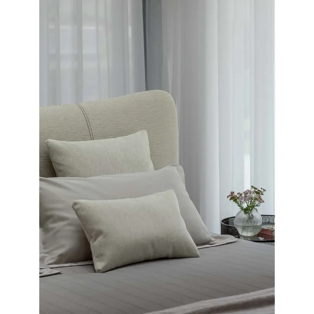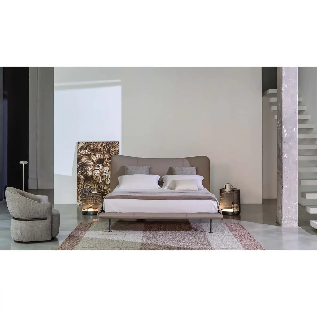 Elevate your bedroom with the Flou Baia bed. Its adjustable slatted bed base and exposed seams offer both style and comfort, while the metal feet and contemporary design add a touch of sophistication. The soft upholstery and gentle headboard curvature create a cozy and elegant atmosphere. Available in fabric or leather.