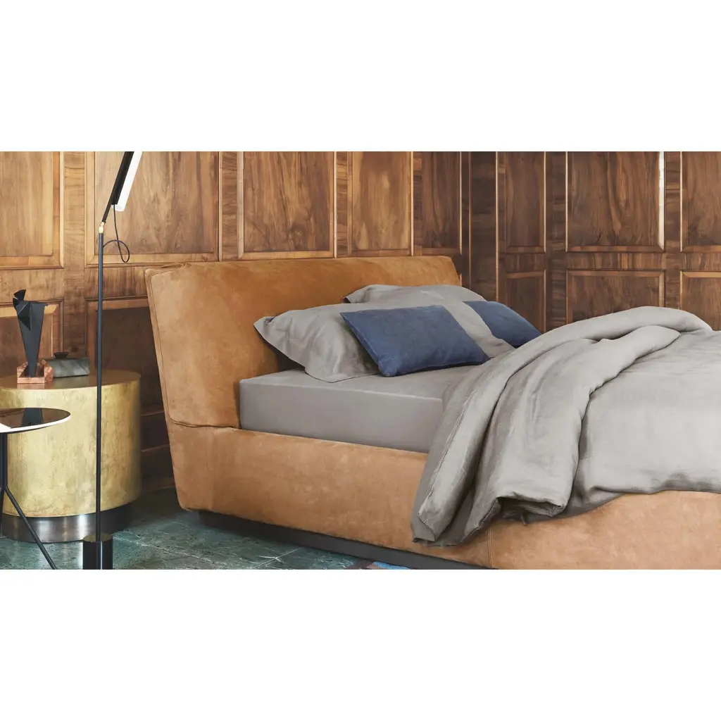 A double-size bed synonymous with style and elegance; unmistakable thanks to its unusual double covers. A decision to choose style and elegance. The attention paid to the production of the covers for the bed and the headboard is the perfect expression of the experience and tailoring excellence of Flou. The covers of the headboard, trimmed with cord in the same color or in a contrasting shade, has dual purpose - esthetic and practical function: they are not removable and they facilitate maintenance and cleaning of the bed.