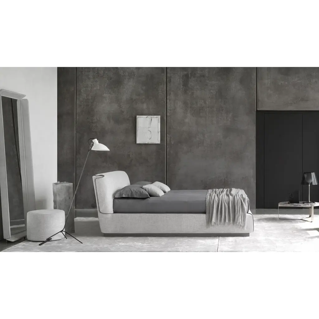A double-size bed synonymous with style and elegance; unmistakable thanks to its unusual double covers. A decision to choose style and elegance. The attention paid to the production of the covers for the bed and the headboard is the perfect expression of the experience and tailoring excellence of Flou. The covers of the headboard, trimmed with cord in the same color or in a contrasting shade, has dual purpose - esthetic and practical function: they are not removable and they facilitate maintenance and cleaning of the bed.