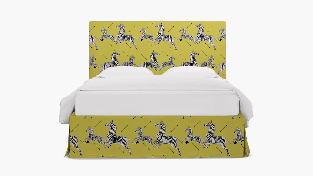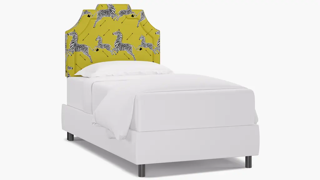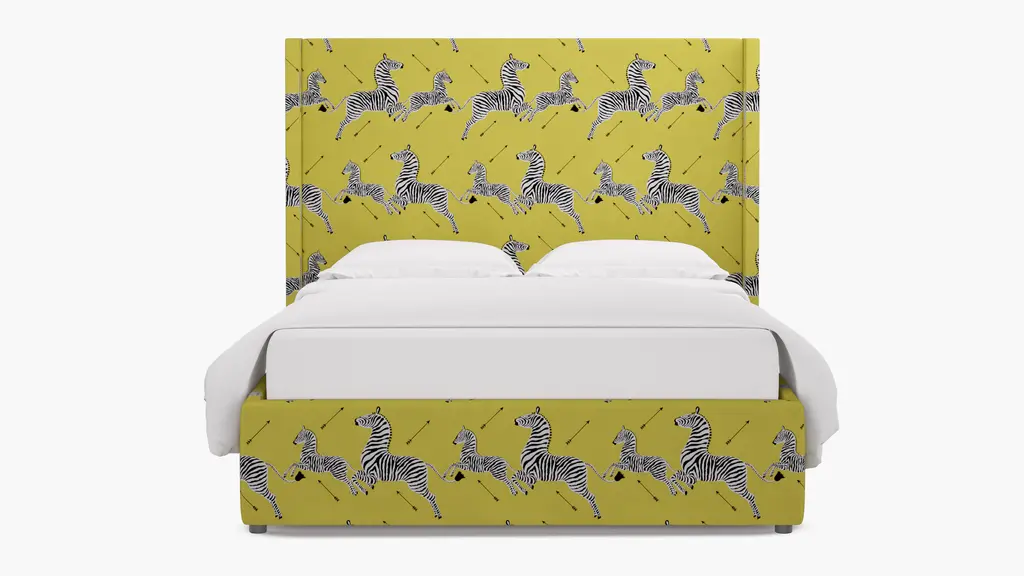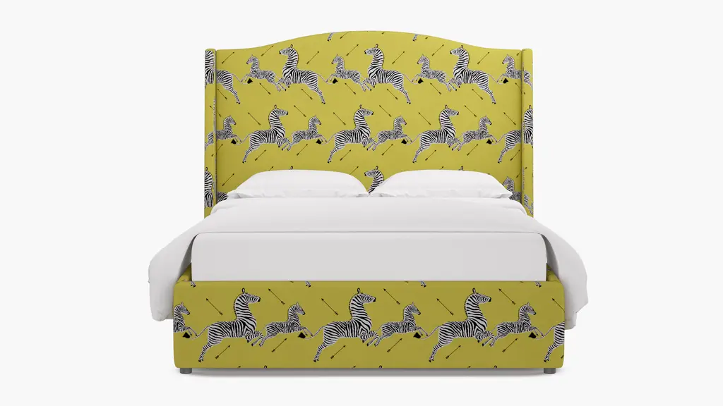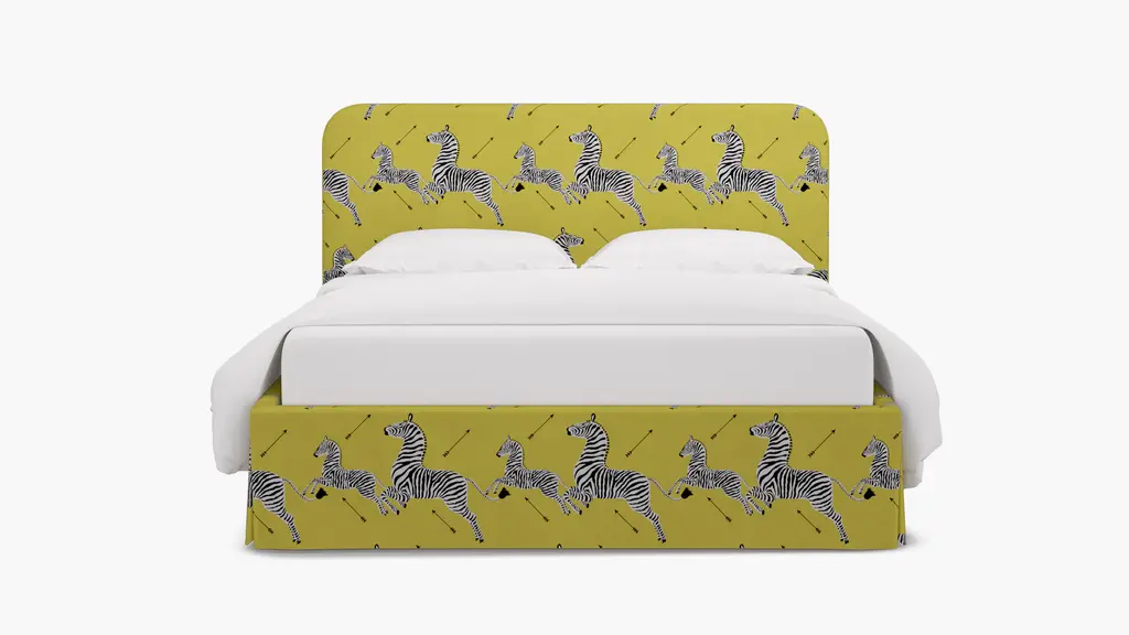 For a modern bed frame with subtle traditional charm, our upholstered Cove Bed checks every box. It features a curved silhouette and symmetrical cut-ins for visual interest. If you prefer a higher bed or additional support, our box spring beds require a standard box spring or foundation. Our platform beds are designed to support your mattress directly on the slats, making a box spring unnecessary. This setup offers a low-profile look and maintains the sleek, modern aesthetic. Customize in 30+ fabrics.