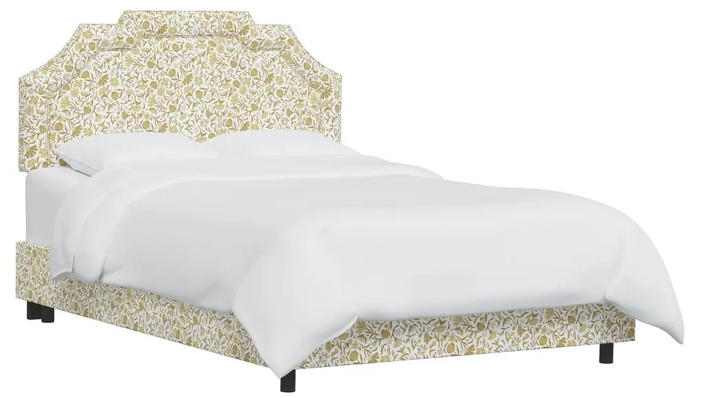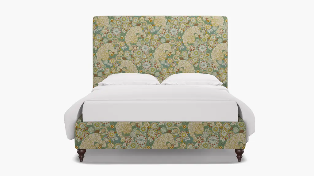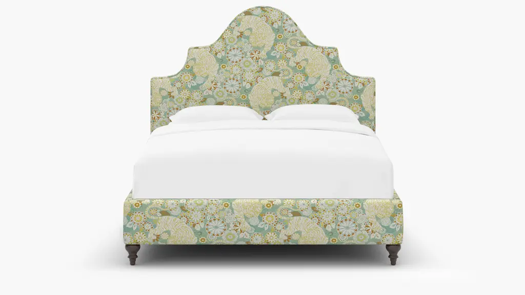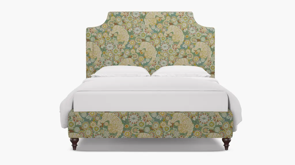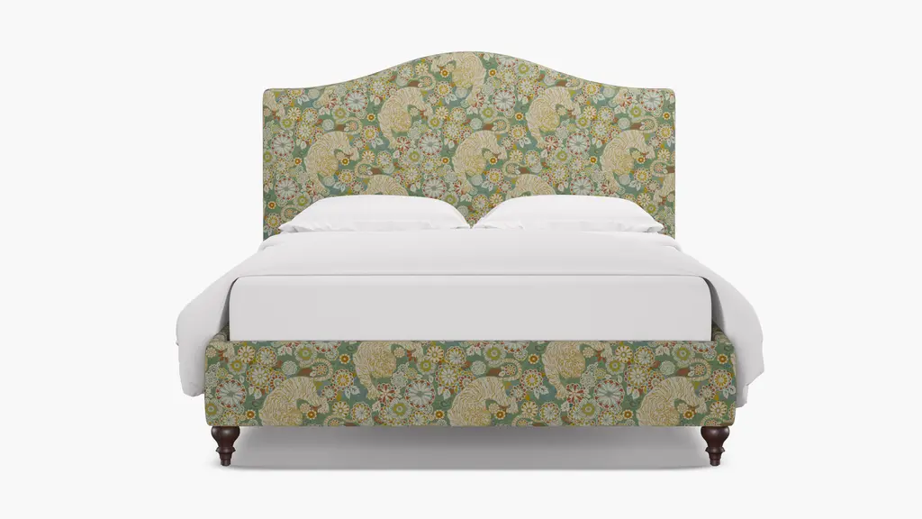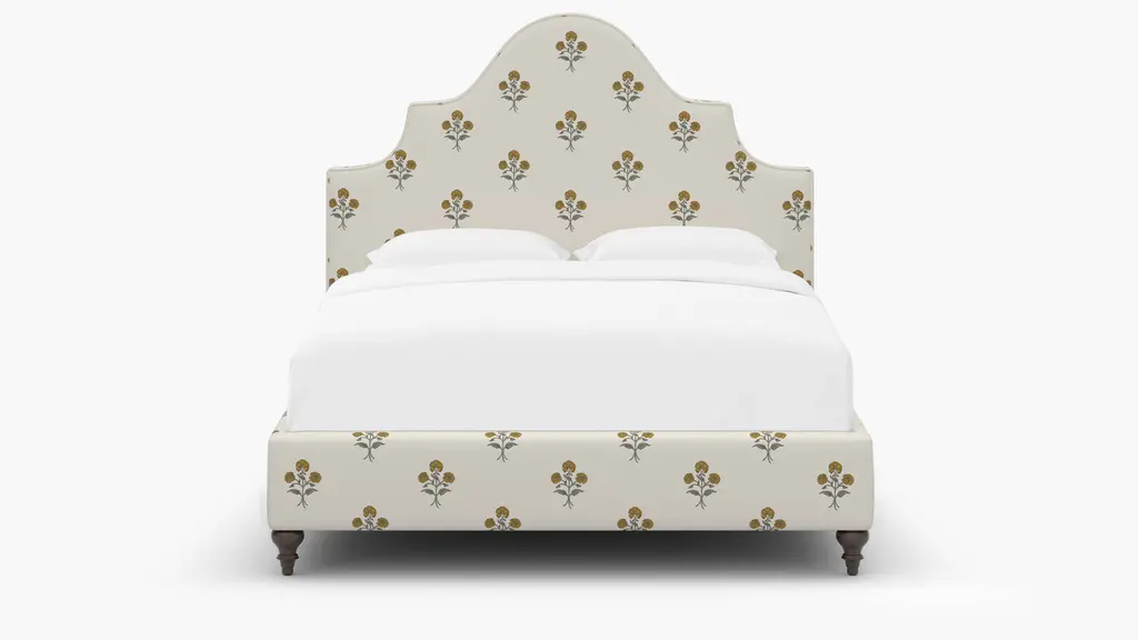 For a modern bed frame with subtle traditional charm, our upholstered Cove Bed checks every box. It features a curved silhouette and symmetrical cut-ins for visual interest. If you prefer a higher bed or additional support, our box spring beds require a standard box spring or foundation. Our platform beds are designed to support your mattress directly on the slats, making a box spring unnecessary. This setup offers a low-profile look and maintains the sleek, modern aesthetic. Customize in 30+ fabrics.