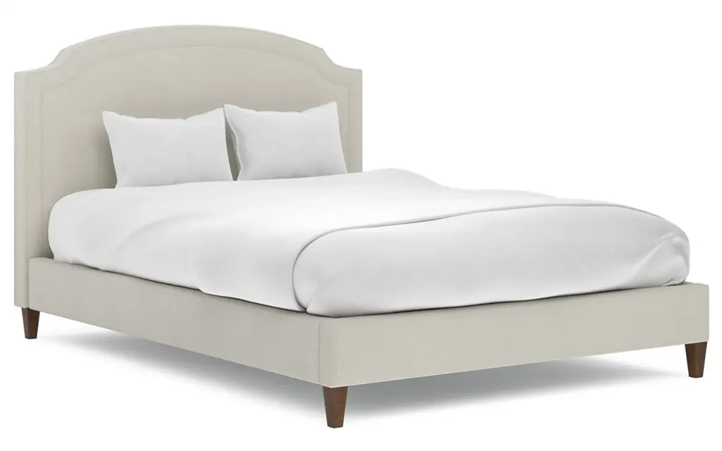 For a modern bed frame with subtle traditional charm, our upholstered Cove Bed checks every box. It features a curved silhouette and symmetrical cut-ins for visual interest. If you prefer a higher bed or additional support, our box spring beds require a standard box spring or foundation. Our platform beds are designed to support your mattress directly on the slats, making a box spring unnecessary. This setup offers a low-profile look and maintains the sleek, modern aesthetic. Customize in 30+ fabrics.