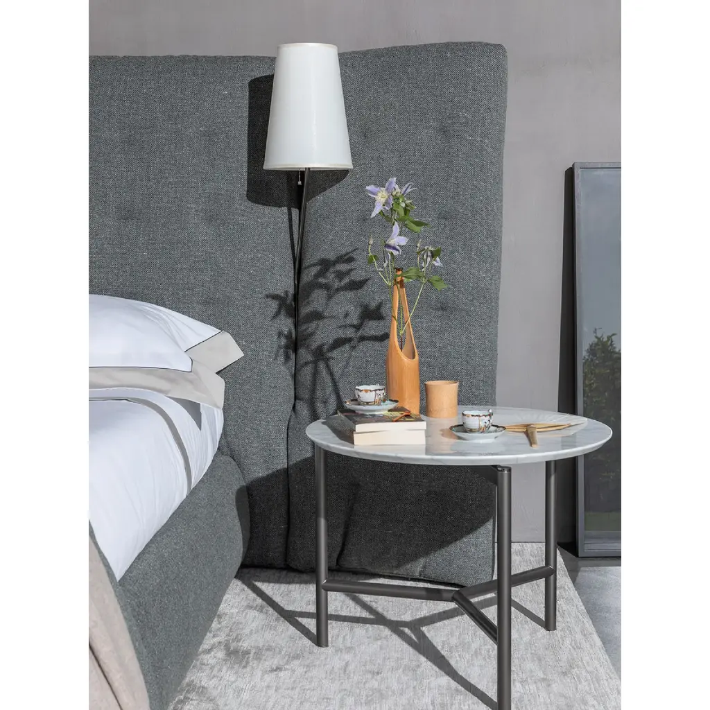 Indulge in the elegance of Flou Angle, a luxurious curved bed with a high tufted headboard. Choose from a simple or panelled design with removable fabric or leather covers. Complete with a box-spring base and optional electrical movements, and add a touch of sophistication with the Angle lamps.