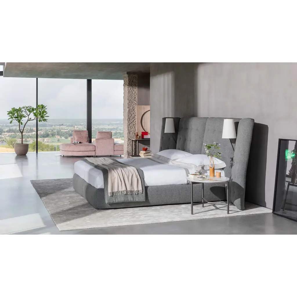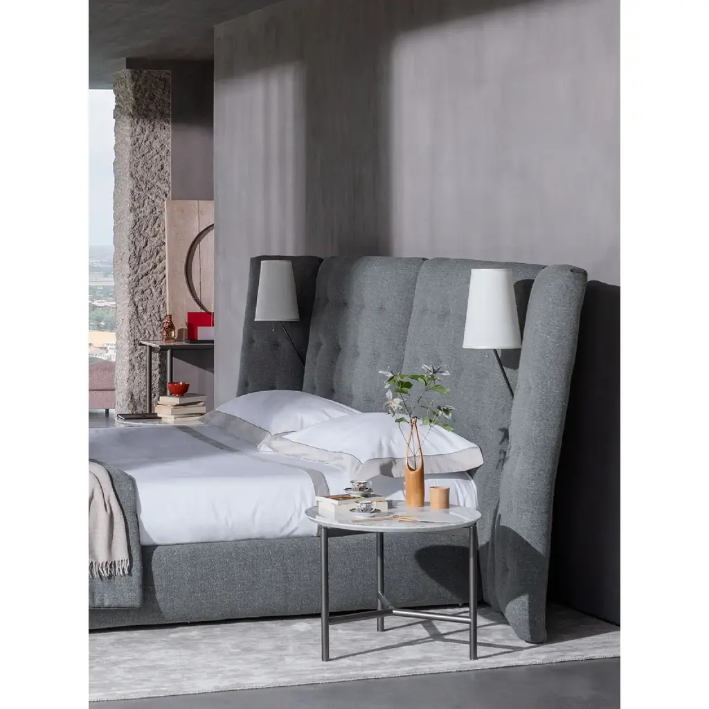 Indulge in the elegance of Flou Angle, a luxurious curved bed with a high tufted headboard. Choose from a simple or panelled design with removable fabric or leather covers. Complete with a box-spring base and optional electrical movements, and add a touch of sophistication with the Angle lamps.