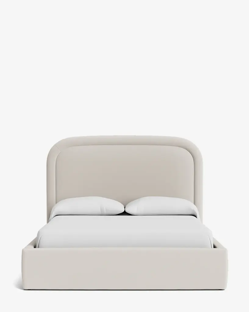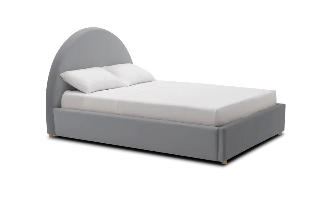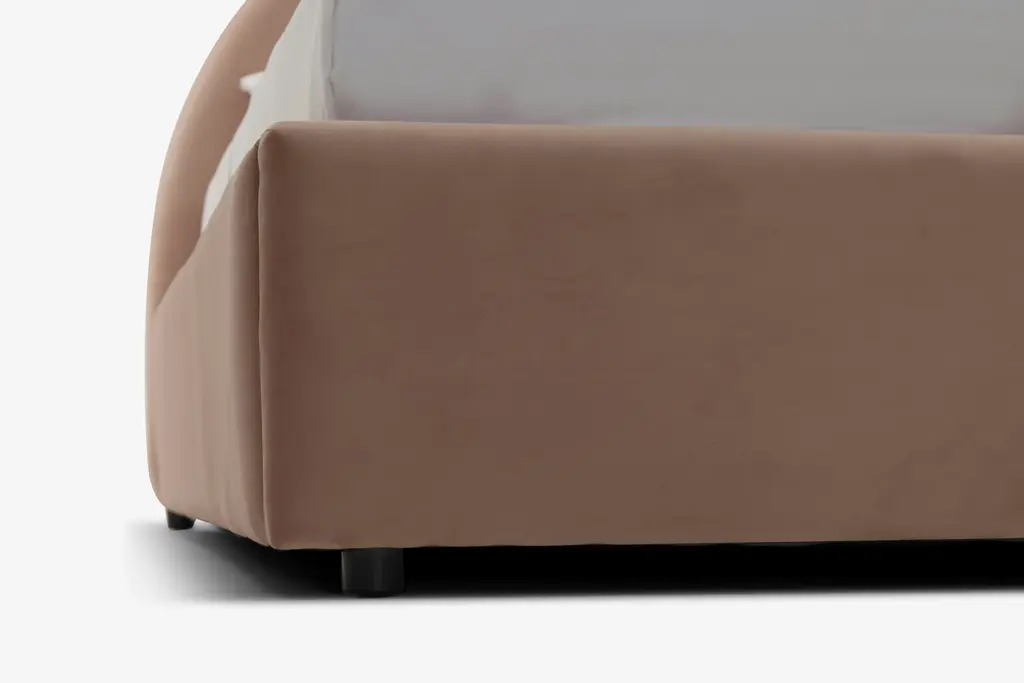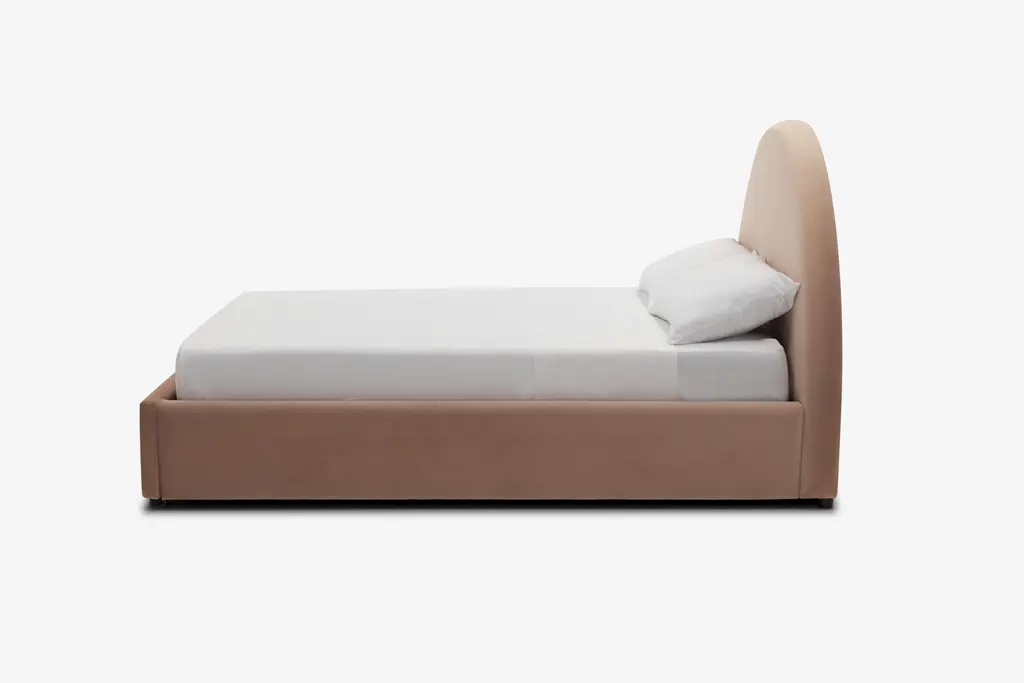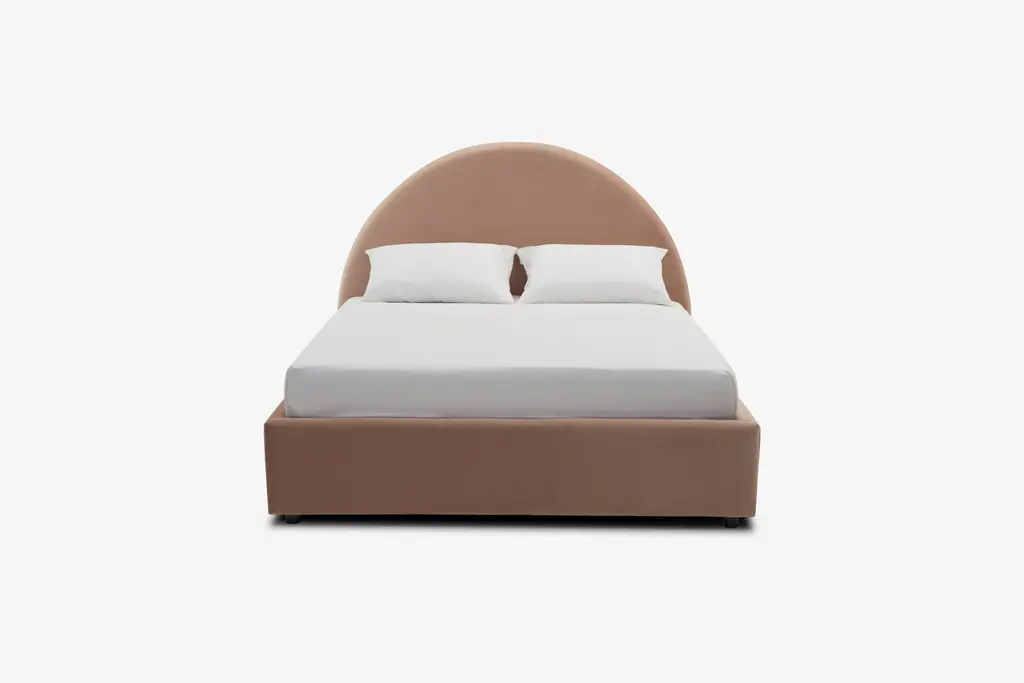 Waking up never looked so good! The Dania Bed boasts a low, wraparound upholstered frame with a show stopping semi-circle headboard. Made to order in your choice of our plethora of fabrics, the Dania brings modern style straight into the bedroom. Its concealed peg legs and low frame adds to the cozy vibes while the large circular headboard makes for the perfect place to lean up against with a good read.