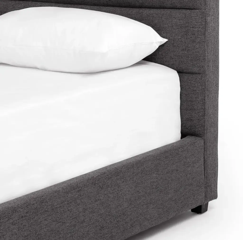 Crafted with a high-quality performance fabric, the Daphne bed has a sleek and textured appearance thanks to its horizontal channeling of the boucle upholstery. Performance fabrics are specially created to withstand spills, stains, high traffic and wear, ensuring long-term comfort and unmatched durability. This bed is not compatible with an adjustable mattress.