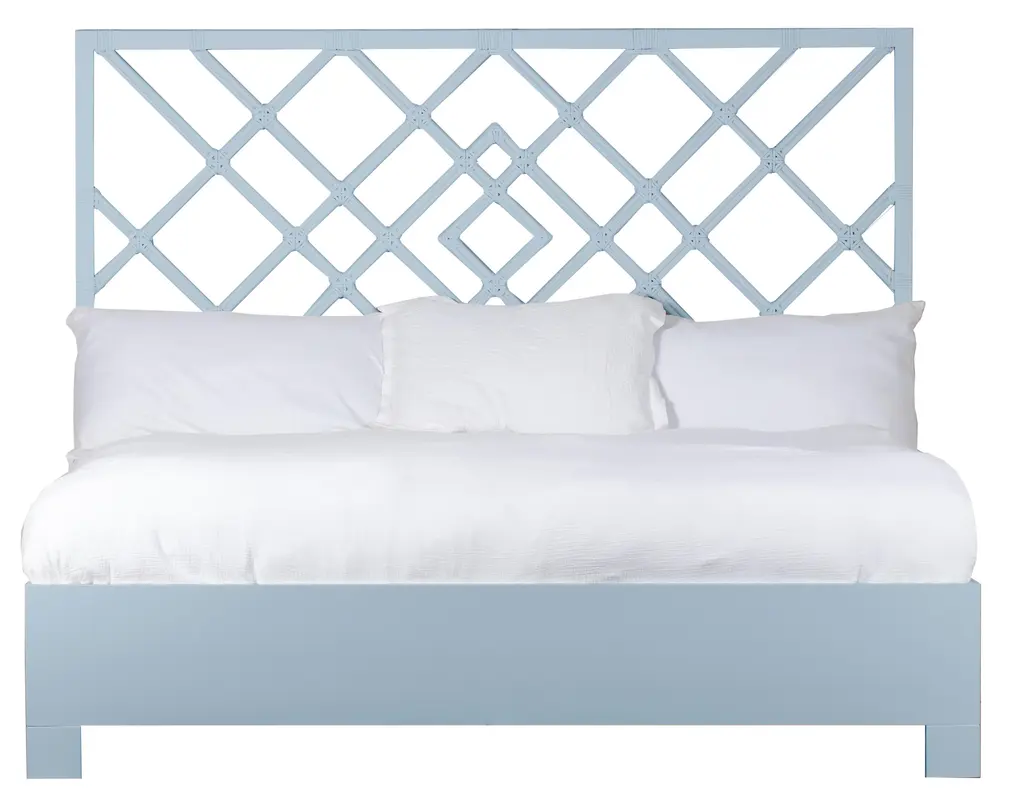 A timeless design, this classically styled bed features a Rattan headboard with a Maple Bed Frame. The Rattan headboard is hand-wrapped with Rawhide Bindings to add a beautiful contrast and strength. The Maple Bed Frame, which accepts a box spring and mattress, is built in the USA. The Rattan headboard easily attaches to the Bed Frame. Each bed is custom made and finished to order. This bed is an artistic centerpiece and will make a statement in any bedroom.