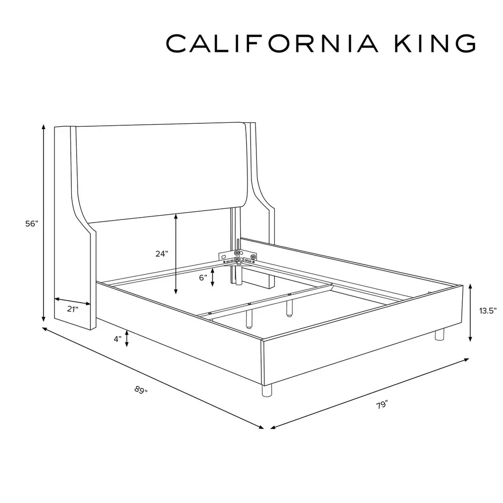 This bed is crafted of pine with a swooping, wingback-style headboard and sumptuous velvet upholstery in a rich navy hue. Generous padding ensures long-lasting comfort and support while sitting up to read or watch TV. Mattress and box spring required. Handcrafted in the USA.