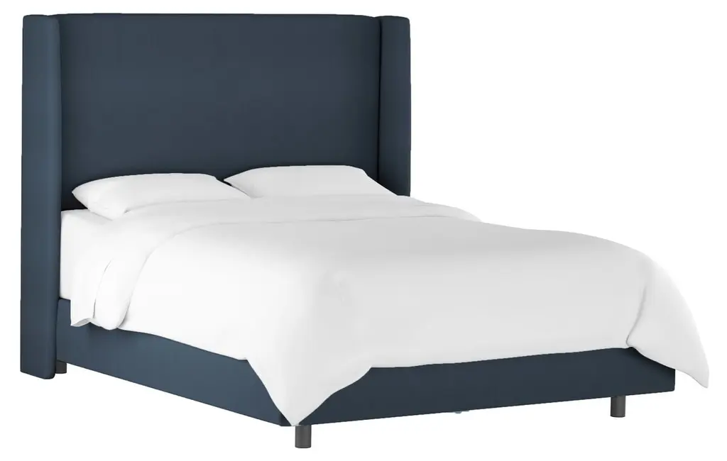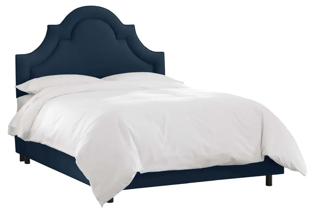 A nod to midcentury design, this headboard boasts a sleek swoop-arm profile and is rendered in a lovely hue. A One Kings Lane exclusive. Requires a mattress and box spring. Handcrafted in the USA.