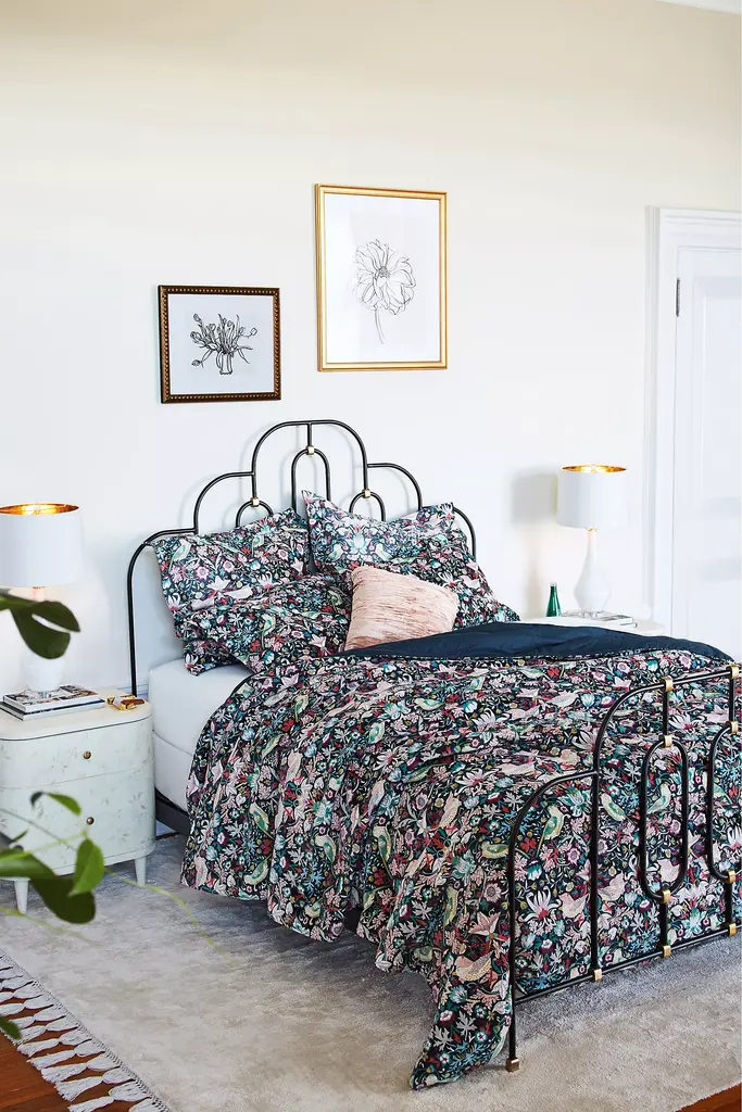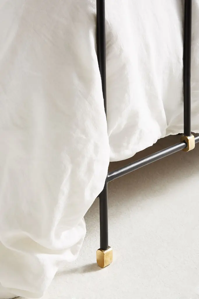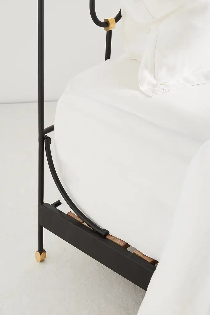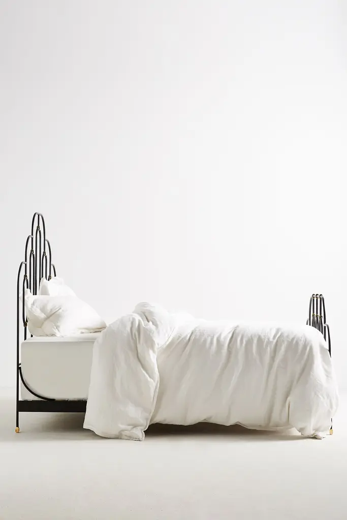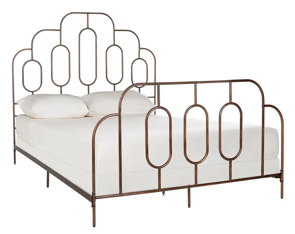With a curved silhouette and Art Deco-inspired motifs in its iron frame, this artistically designed bed is the perfect spot to display layered quilts, blankets, and comfy bedding. For ordering assistance and more, please contact us. For aesthetic advice and tips to help decorate your space, enjoy our complimentary home styling services.