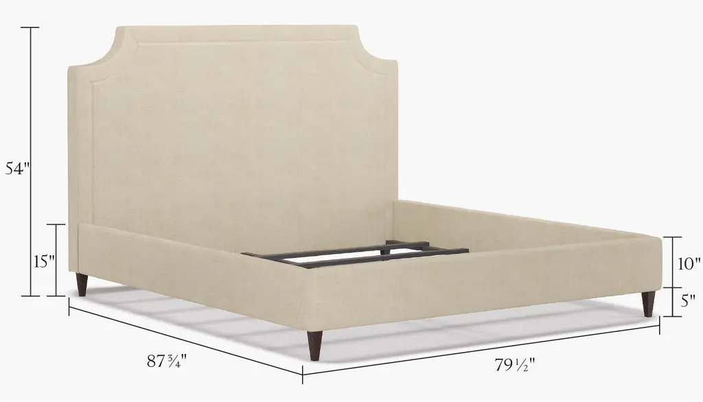 With an ornate silhouette and stitched detailing, the Deco Bed provides a glamorous backdrop to everyday life. If you prefer a higher bed or additional support, our box spring beds require a standard box spring or foundation. Our platform beds are designed to support your mattress directly on the slats, making a box spring unnecessary. This setup offers a low-profile look and maintains the sleek, modern aesthetic. Customize in 30+ fabrics.