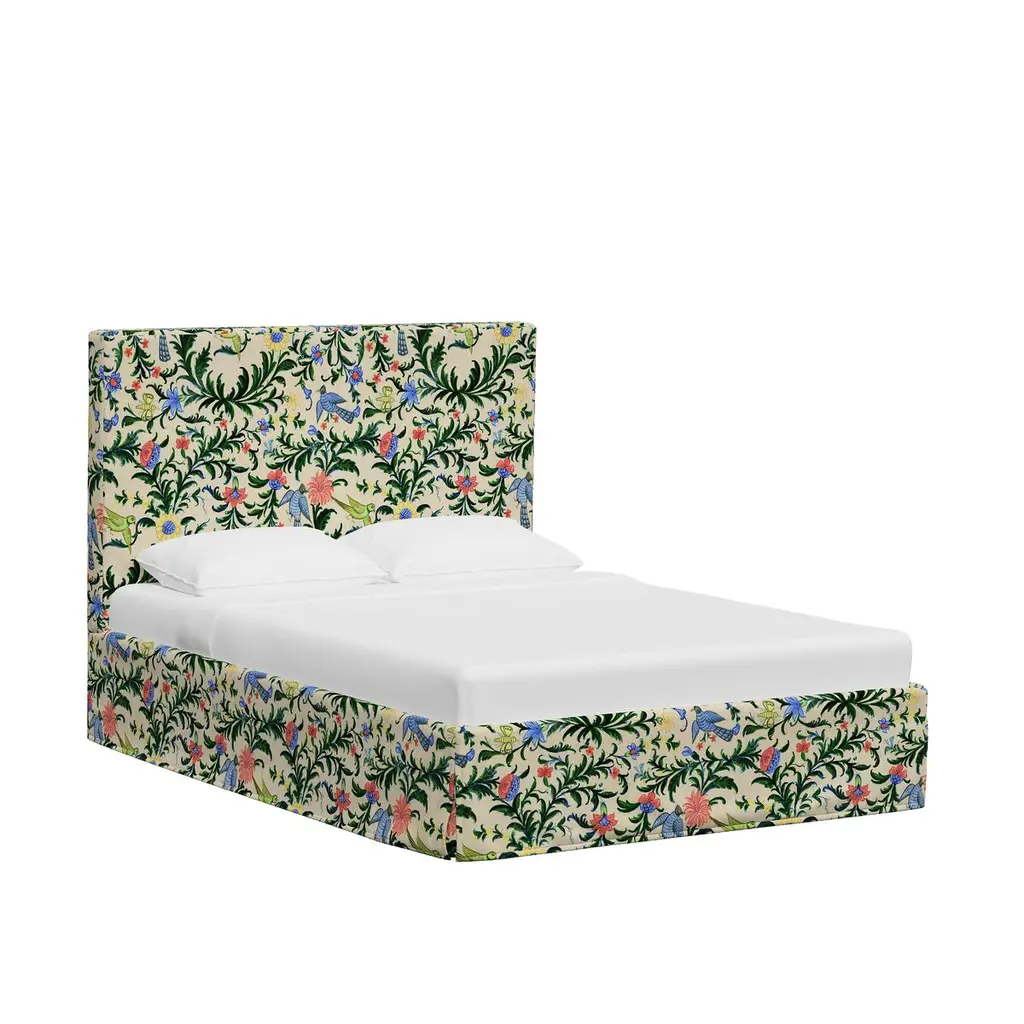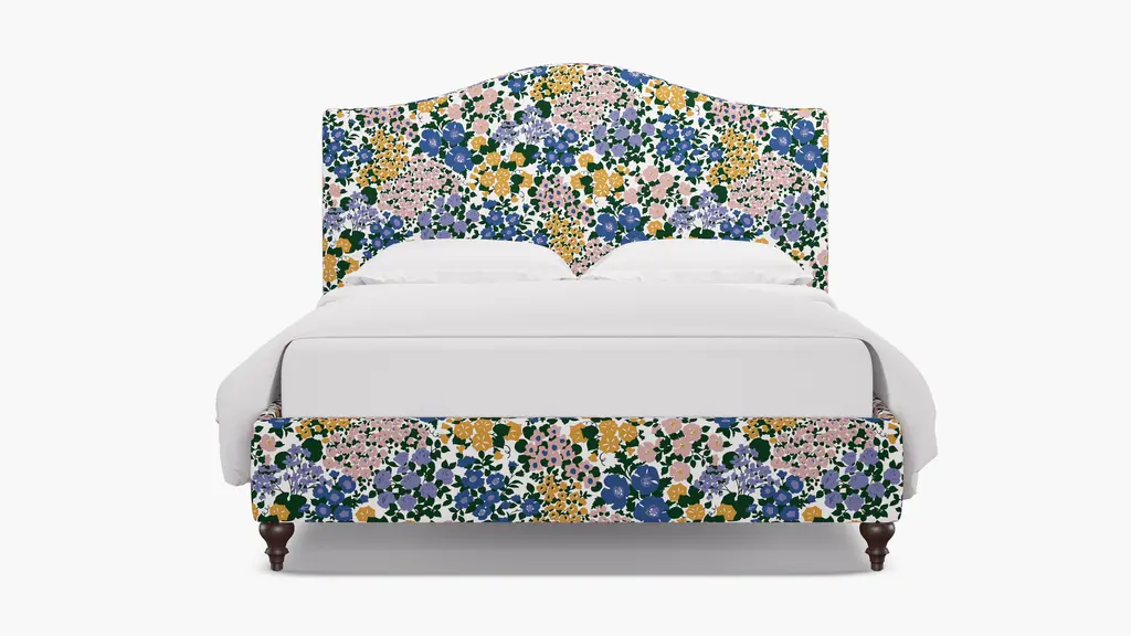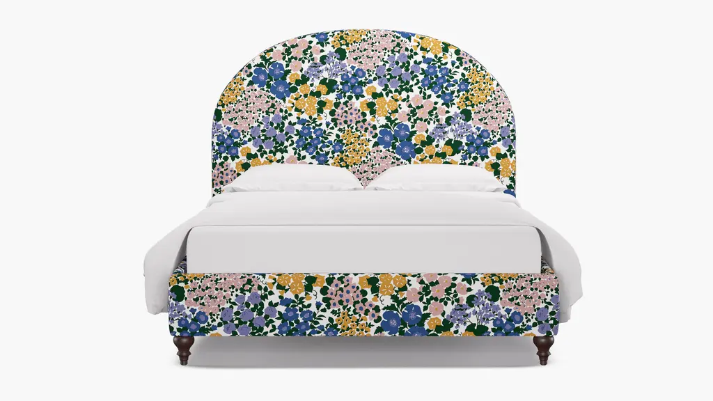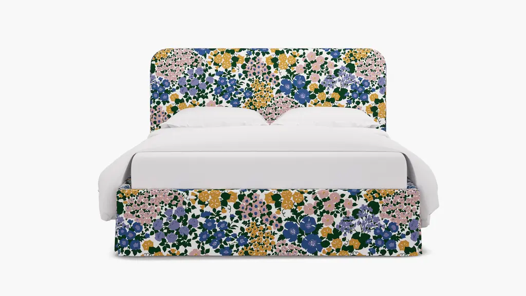With an ornate silhouette and stitched detailing, the Deco Bed provides a glamorous backdrop to everyday life. If you prefer a higher bed or additional support, our box spring beds require a standard box spring or foundation. Our platform beds are designed to support your mattress directly on the slats, making a box spring unnecessary. This setup offers a low-profile look and maintains the sleek, modern aesthetic. Customize in 30+ fabrics.