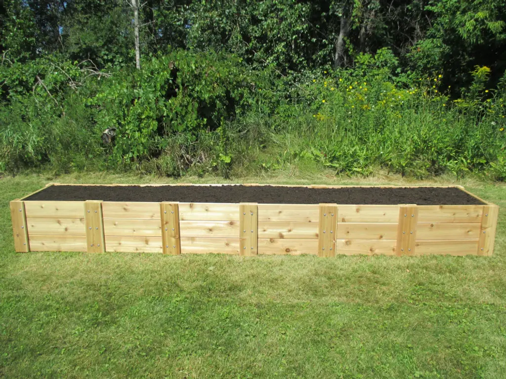 - 16.5" deep to accommodate large, deep-rooted plants. Soil Capacity: 21 cu. ft. and total growing area of about 16 square feet- Strong, Quality build "" 1"3 thick premium quality deck boards combined with strong joint design will not bow under the weight of wet soil and will last for years. This product uses over 80 lbs of cedar deck boards.- Easy Assembly and can be easily disassembled as needed. All hardware is included.- 100% Natural: 1"� Thick Rot and Insect Resistant Western Red Cedar Deck Board Construction (no composites!). No harmful chemicals or residues to worry about!-Superior Quality Product Made in the USA, 5 Year Warranty. Can be stained, painted, or left unfinished for a natural look.Create a bountiful veggie garden or a border flower garden with the Infinite Cedar Deep Root Cedar Raised Garden Bed. This durable garden bed is crafted of Western red cedar, which is naturally rot-resistant and doesn''t contain any chemicals. You can place this garden bed where it''ll get the sun or shade it needs and where it''s easy for you to access, plus it is easy to assemble and comes with all the required hardware. This garden bed offers a contained and more organized gardening space, this raised garden bed helps to produces higher yields and lessens the amount of digging and weeding you''ll need to do. This garden bed is a premium quality product made in the USA. It can be stained or painted in any shade you like or left unfinished for a natural look. Ideal for deep-rooted plants likes tomatoes and blueberry bushes, these 16.5" deep beds also create attractive focal points in the garden. This garden bed is a show piece all by itself. Sure to please.