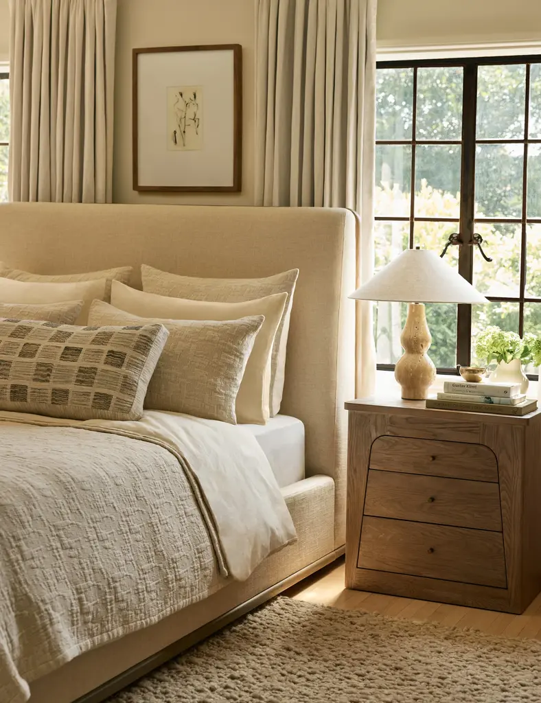 DISC Interiors emphasizes people and place in their designs, creating spaces that find balance and impact through thoughtful curation. They bring that same philosophy to this collection with pieces that invite you to live in comfort and love your surroundings. Delphine offers a modern upholstered bedrefined in every detail. This bed frame's touches of wood and rounded silhouette inspire a sense of lightness in the room.