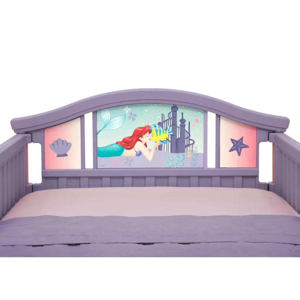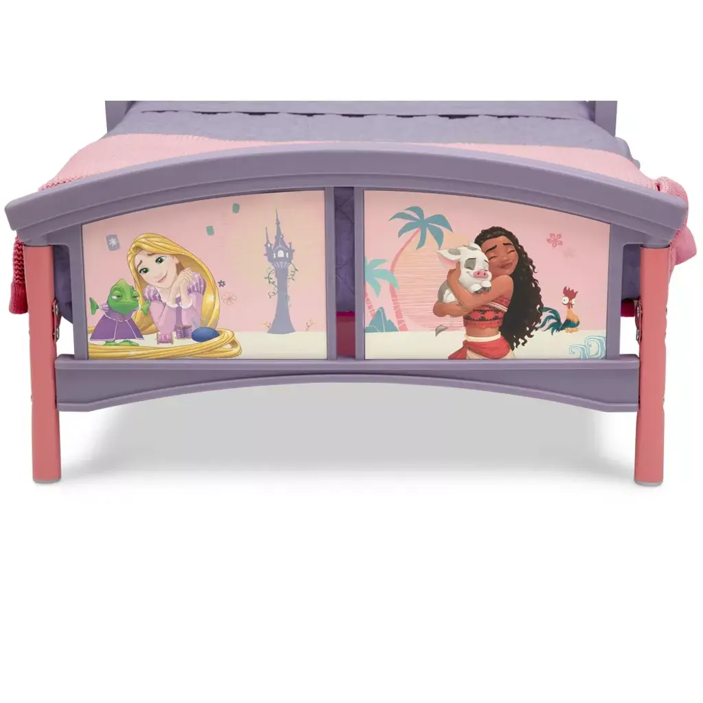 Your little one will relax like royalty with this Disney Princess Plastic Toddler Bed by Delta Children. Featuring colorful decals of everyone’s favorite Disney princesses, Ariel, Rapunzel and Moana, this kids’ toddler bed ensures each night ends happily ever after. The bed’s low mattress height and attached guardrails make it the best option for your child’s first big-kid bed, giving them the independence they crave while keeping them safe throughout the night. Get this toddler bed today and bring home the magic of Disney! Bedding and mattress not included. About Disney Princesses: From royal castles to happily ever after, the Disney Princesses evoke the stories girls love to dream about. Belle, Ariel and Cinderella are just a few of the famous princess depicted on the Princess-inspired chairs, beds, toy storage and more from Delta Children.