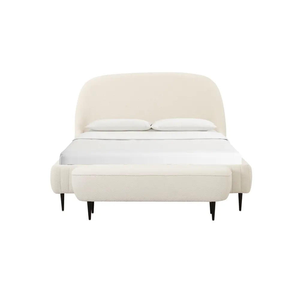 Upgrade your bedroom with the Denise Cream Boucle Bed with the perfect blend of cozy boucle fabric, channel tufting, and black iron legs. Supported with a wood frame and the iron legs, this frame offers great strength and stability. The sleek and modern shaped headboard exudes elegance and comfort.