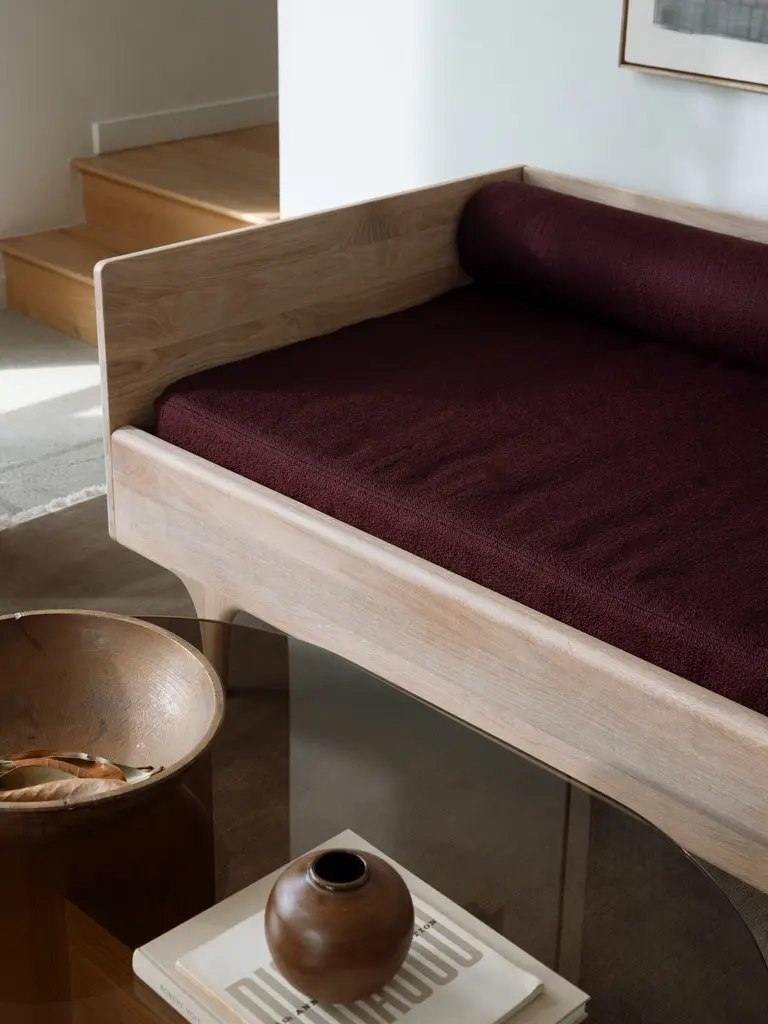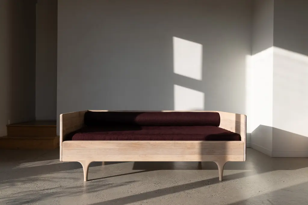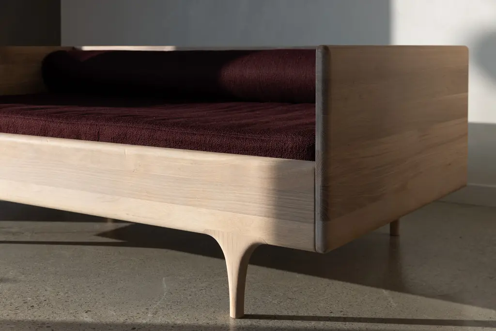 The Divan Twin is made from solid, oil-rubbed Ash or White Oak featuring elegant leg design that nods to midcentury form. Designed with a modern and multifunctional spirit in mind, the Divan is sized for a twin mattress and works as a lounge, bed, and day bed. Upholstery options now available. A forever favorite beloved for its effortless versatility, the Divan Twin was designed to be an ideal piece for a variety of uses. Sized for a twin mattress, it is perfect as a lounge, bed and daybed. Comfortable and elegant, with a pared back design that adapts effortlessly to any environment, the Divan Twin is crafted from solid hardwood by traditional craftsmen in Pennsylvania, embodying Kalon’s commitment to timeless design and exacting craftsmanship.