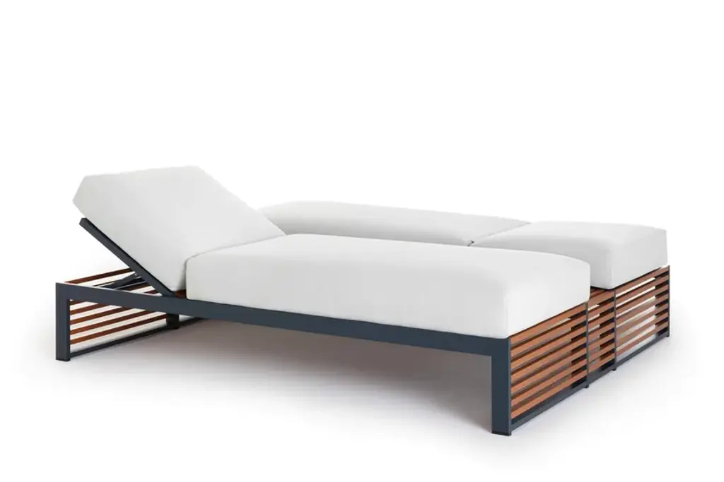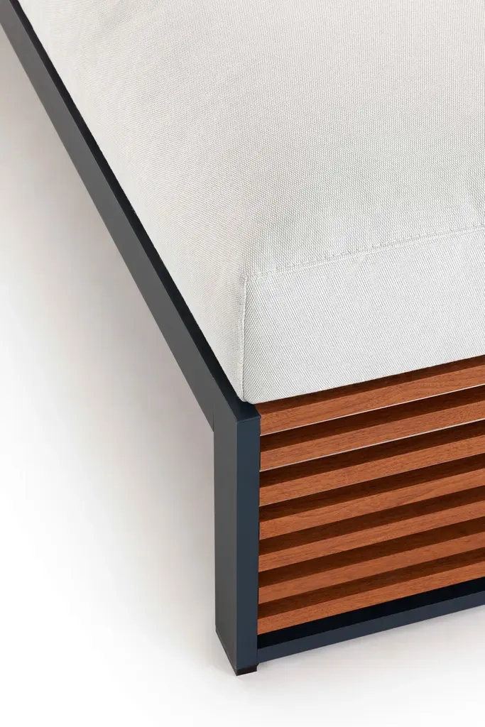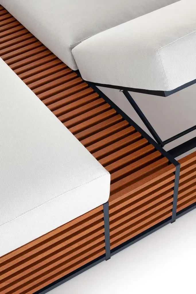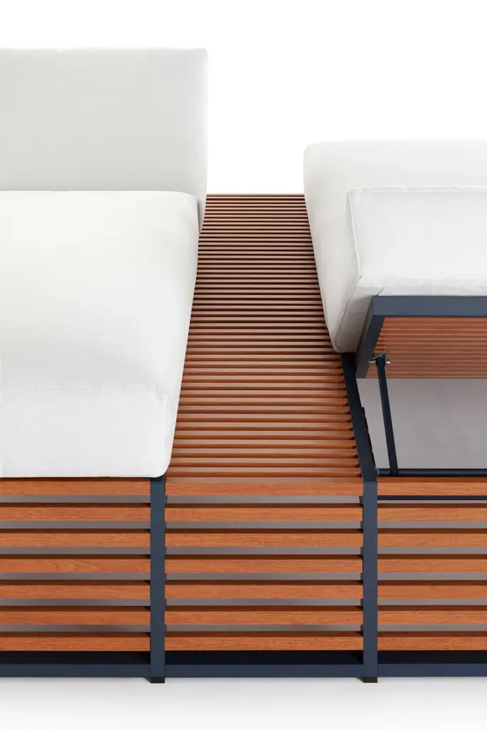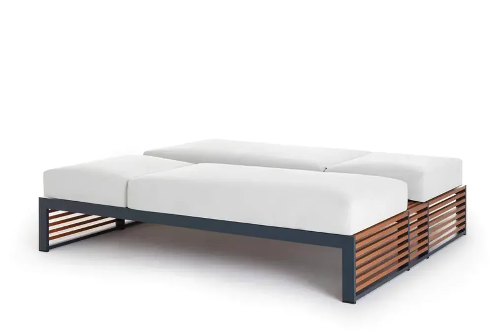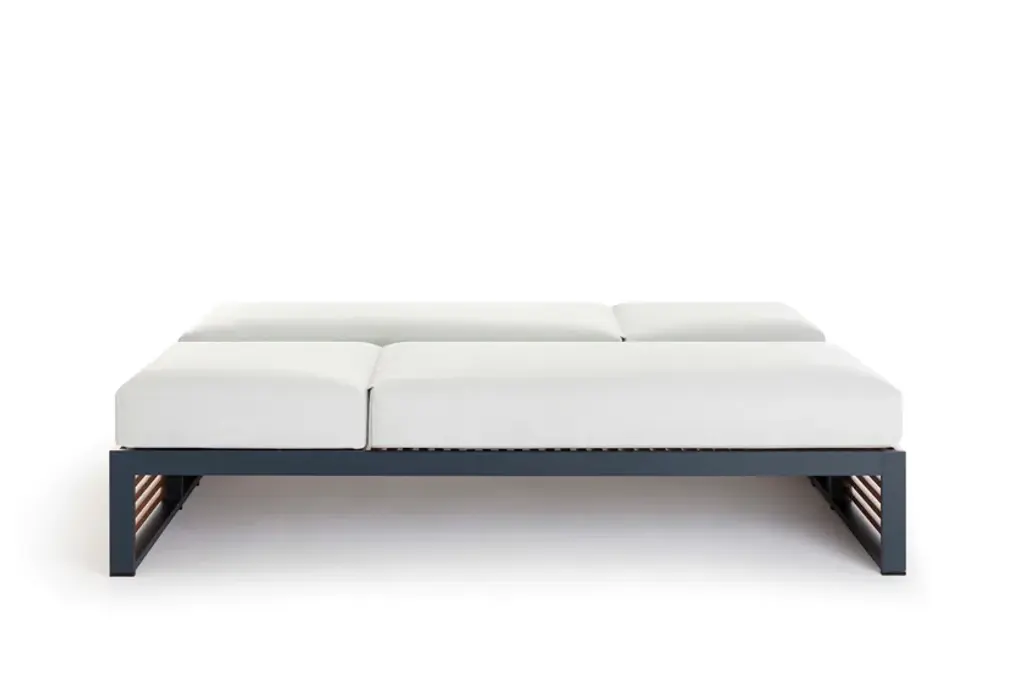 “I have always felt attracted by the patterns of light and shadows filtering through Mediterranean shutters, as well as by the work of certain architects from the Far East who work with wooden slats and bamboo cane. DNA is an outdoor furniture collection that reinterprets the essence of these horizontal shapes.”José A. Gandía-BlascoDNA is a collection of outdoor furniture inspired by the subtle play of the modulations of light and shadows filtering through Mediterranean shutters and it praises the shadows of Japanese aesthetics in traditional and contemporary architecture – the positive and the negative dispossessing any superfluous adornment.Made of anodized or thermo-lacquered aluminium profiles. Polyurethane foam rubber covered with water-repellent fabric. Removable fabric cover.Collections colour sample: anodized, white, agate grey, cement grey, sand, bronze, wine red, blue grey, grey blue, signal grey, anthracite and black.