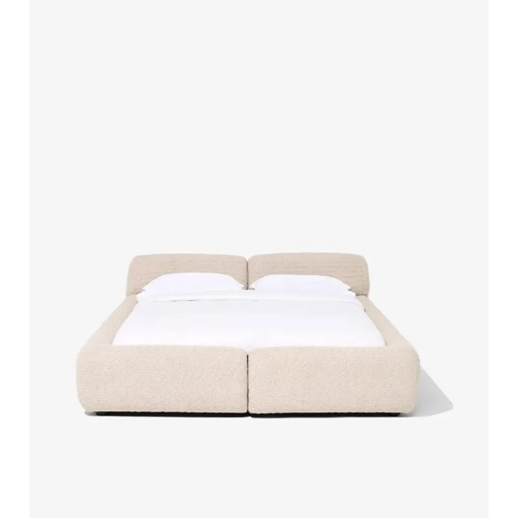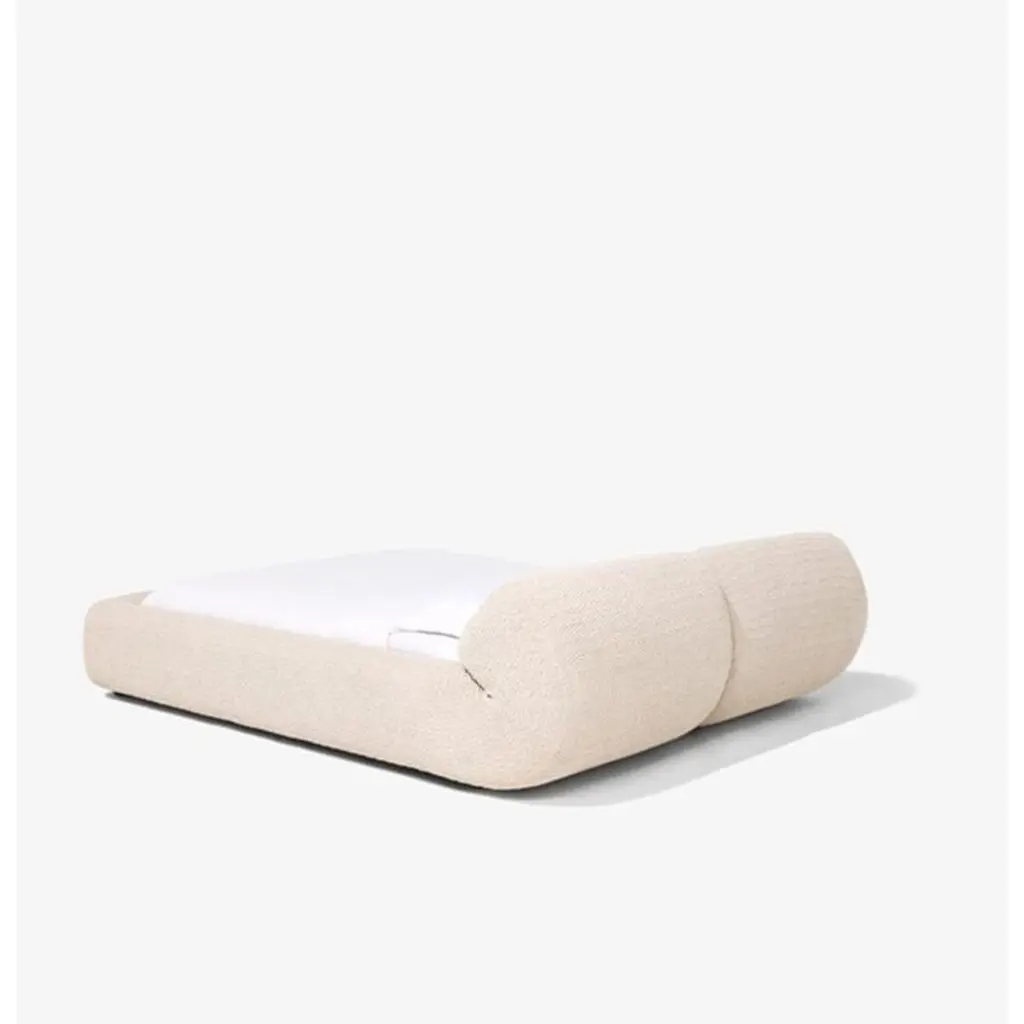 Dobra Double Bed by WentzDimensions: D 250 x W 172 x H 70 cmMaterials: Upholstered bed with wooden structure, elastic straps, hypersoft foam and WE—KNIT covering. Wooden feet with matte black paint. The Double, Queen and King versions can be dismantled into two parts for easier transport.The Dobra series was created from a natural gesture: folding a soft material. A force is applied to each piece that respects the resistance and density of the foam. It's as if a large cushion curved and paused in time. The exclusive WE-KNIT coating — 3D mesh made from recycled PET — combines a tactile experience, with high resistance to use and sustainability.This is one of the possible modules for the Dobra Sofa and can also be used individually as an armchair.WENTZSILENT AND NATURAL LIVING DESIGNED IN BRAZILBrazilian brand of furniture, lighting and accessories design.We live in silence, contemplating the environments, through pieces that welcome well-being. We seek to give naturalness to living, with harmonic and sensorial simplicities. We express Brazilian uniqueness through our lines, highlighting local materials and technologies.With a contemporary tropical aesthetic, designer Guilherme Wentz's creations reflect the contemplative personality of their creator, connected to nature and obsessed with design. His designs present a new look at living, where each piece conveys a perfect balance between simplicity and functionality.1987 — Guilherme Wentz is born on July 17, in the city of Caxias do Sul, in Rio Grande do Sul, where he spent his entire youth.2008 — Guilherme drops out of the Business Administration course to start a new creative life studying Product Design.2010 — Begins his career as a designer at the Riva objects brand, where he works for two years.2012 — Recently graduated, receives the IDEA Brasil award for his first product on the market, the Officer desk, developed for the São Paulo brand Decameron.2013 — Receives the iF Design Award for his second signed project, the K for Riva Collection, sets up his studio and starts designing for different brands of furniture, lamps and objects.2014 — Moves the studio to São Paulo, takes on the Style Directorship of the Decameron and Carbono brands and is invited to a project commissioned by the São Paulo Museum of Modern Art.2016 — Joins businessman Rafael Gehrke to launch his first independent collection, called "Capítulo 1", which in its first year was already available in some of the main designer stores in Brazil and the United States. In the same year he was named "Rising Talent" by Maison & Objet Americas and received the Museu da Casa Brasileira and iF Design Awards, both for Luminária UM, developed for Lumini.2017 — Named "Rising Talent" at the Casa Vogue Awards. One of his projects, the Post-Tropical Vase , is acquired for the permanent collection of the Lisbon Design and Fashion Museum.2018 — Wentz is named by the New York Times T Magazine as one of the "6 Rising Studios of the Americas."2019 — The WENTZ brand is established for the production and distribution of independent collections and the launch takes place during New York Design Week. In August, the brand's first store opens in São Paulo.