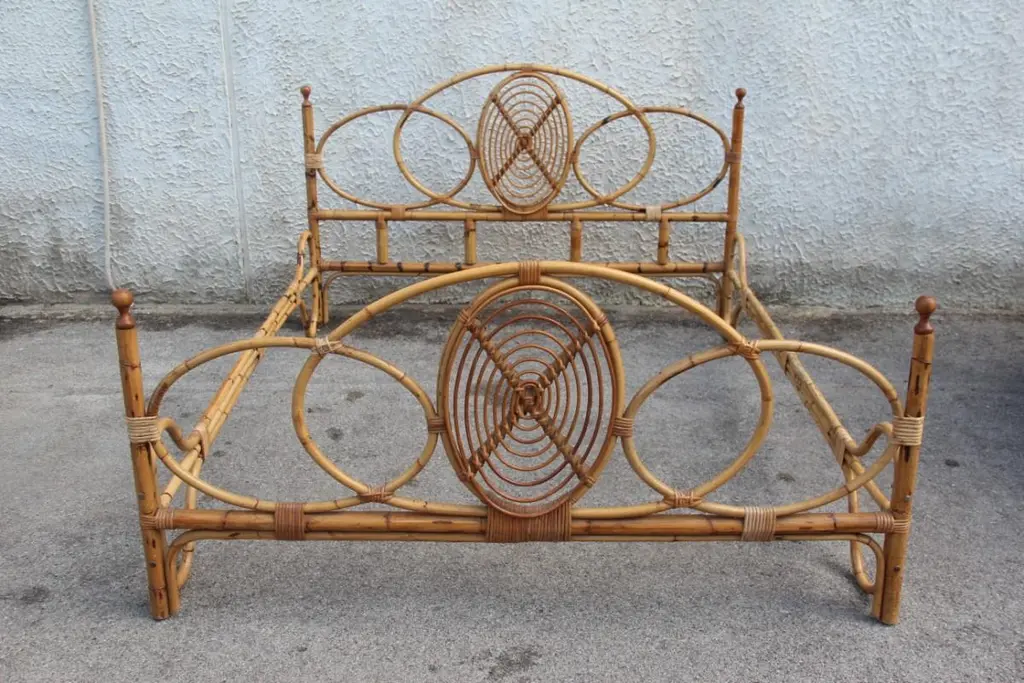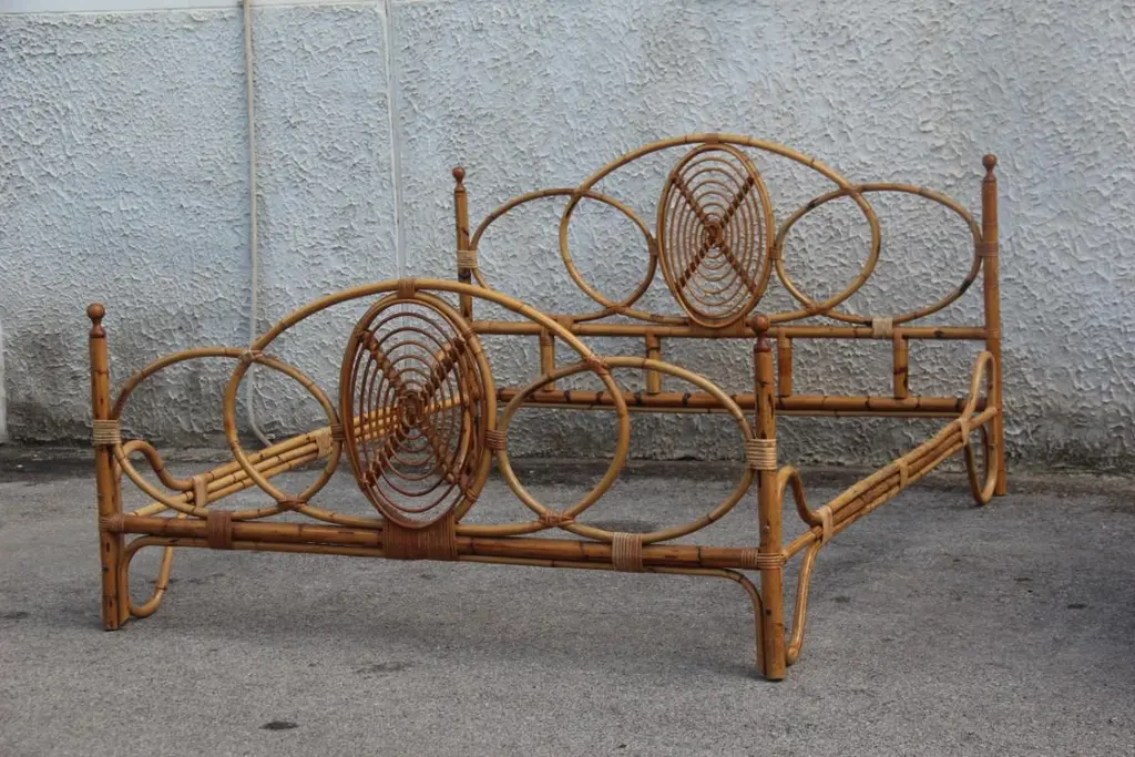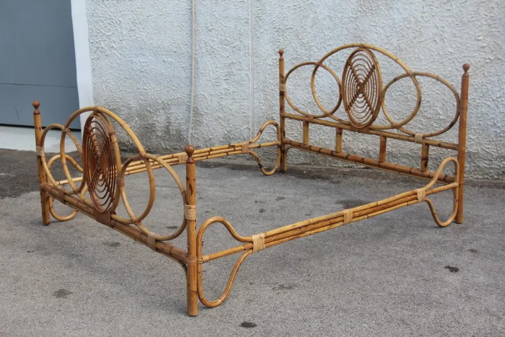 Double Bed Mid-Century Italian Design Solid Bamboo, 1950s