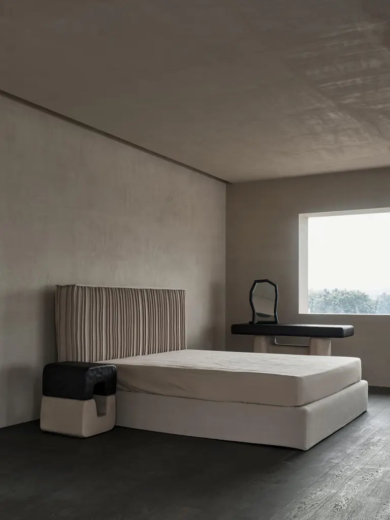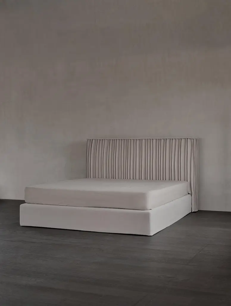 Drape Bed by DAaZDimensions: D 195 x W 226 x H 120 cm.Materials: Wood, fabric.DAaZ Furniture honors the spirit of adventure. We embrace the escape of the ordinary and revel in the magic that’s found in the unexpected. Our artistic ability shines through in our choice of contrasting designs that challenge conventions, tailor trends, and bring out the creative flair in our customers too. Faced with a treasure trove of choices, you are inspired to walk individual paths leading to the unknown, unveiling new sights, enveloping you in the scent of nostalgia.We bring to your home more than just beautiful design, but unique fragments of life stories. After all, what is your home but a blank canvas on which to celebrate your own journey with the people you love.