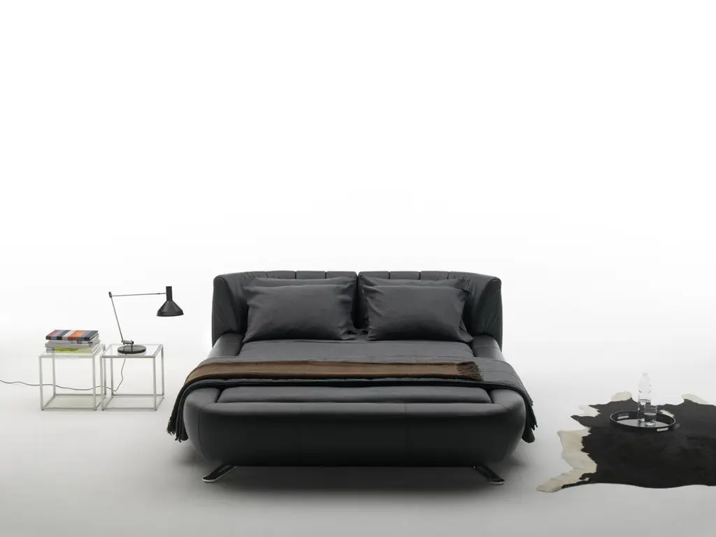 DS-1164 bed by De SedeDimensions: D 251 x W 202 x H 47 cmMaterials: metal construction, leatherPrices may change according to the chosen materials and size. Playful design for sensual momentsBackrests can be easily and quickly moved into the right position for every use and occasion.Standardized elements can (as a rule) be used for slatted frames and mattresses. This affords individual design of the beds’ interiors.We recommend use of our DS-1103 mattress and DS-1113 topper.De Sede has its origins in a small but skilled saddler's workshop in Klingnau, Switzerland. The craftsmen there committed themselves to transforming the best possible leather into seating furniture. Their years of experience and diligence enabled them to create handcrafted leather furniture of singular quality.In 1965, the family-run business became a joint-stock company called De Sede AG, but remained faithful to their original guiding principles.The company developed rapidly from this moment onwards: top designers of international caliber were brought on board to create seating furniture, additional manufacturing facilities were opened, and an international distribution network was established. Sophisticated designs that skillfully integrate traditional and precise Swiss workmanship swiftly gained the brand an international reputation.Today, De Sede AG presents itself as a leading manufacturer of exclusive leather furniture. Out of the original small workshop, a company has emerged that employs over 110 people and distributes furniture in more than 69 countries, including the United States and Russia, the GCC countries, and even emerging markets such as China and Brazil.