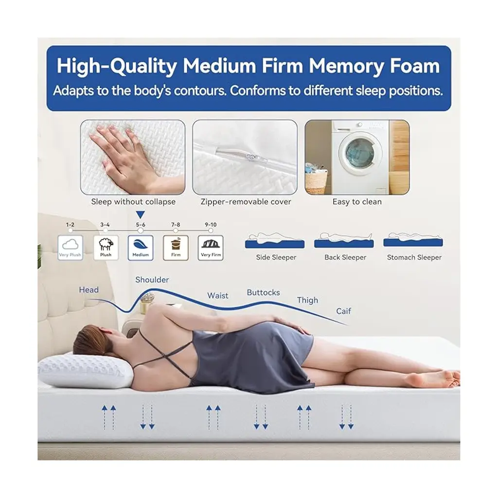 High-quality memory foam mattress: Boxed hard mattress, with a luxurious Tencel detachable cover, softer and cooler. Free of fiberglass, it uses high-quality cooling gel/green tea memory foam, fitting your body shape and allowing you to sleep peacefully. The perfect family gift for camping enthusiasts. Upgraded Tencel without fiberglass cover: The Green Tea gel mattress features a breathable and soft jacquard Tencel cover, which is smooth, comfortable, soft and cool, allowing you to enjoy deep sleep even in summer. There is a zipper near the back and it can be machine washed. There is a zipper near the back and it can be machine washed. Rv mattress: Our memory foam and fabric have undergone safety assessment and meet the standards. This mattress is perfect for your RV/camper van/trailer/truck. From camping to daily life, this mattress can bring you and your family a good night's sleep. Relieve stress and provide strong support: This sturdy mattress conforms to the body's curves. The breathable green tea and refreshing gel memory foam effectively control odors, making you feel refreshed when you wake up. The bottom of the mattress is made of high-quality sponge, which provides support for the spine and keeps the sleeper's muscles relaxed. Warranty and box mattress: The mattress is packed in compressed packaging for convenient transportation and moving into the bedroom. Just open the package, unfold the mattress, stretch it, and it will return to its original shape within 2 hours.