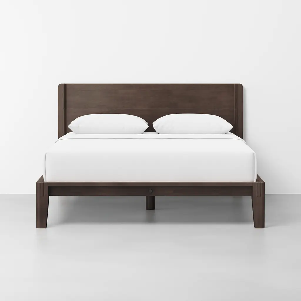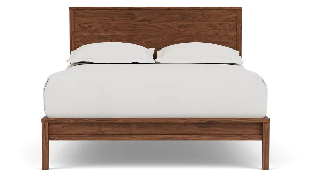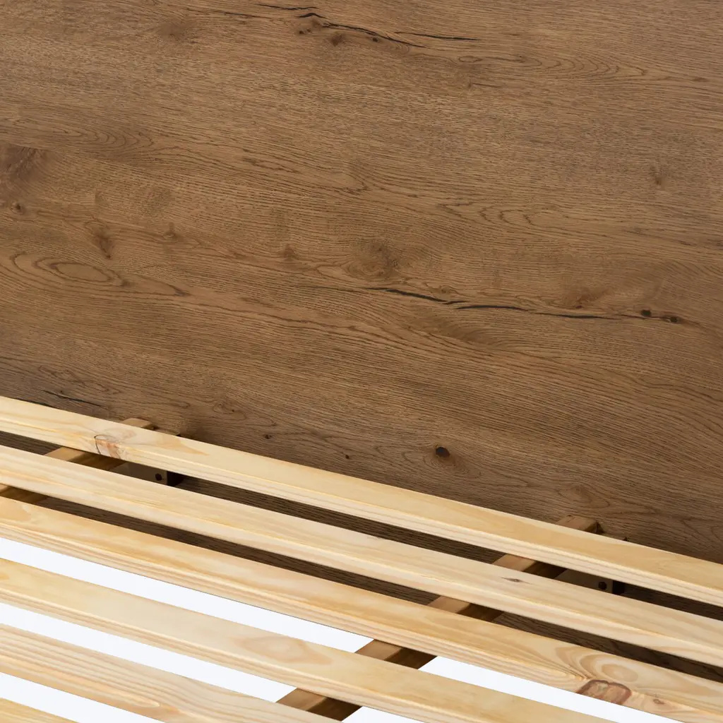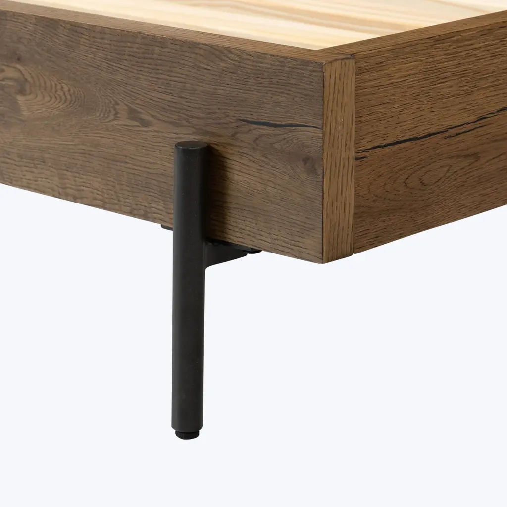 Bring an organic feel to the bedroom with the Eaton Bed by Four Hands. Crafted in thick oak veneer, the Eaton Bed is outfitted with slim iron legs for industrial contrast. The oak’s natural cracks are filled in with black resin, enhancing the richness of this high-quality bed. Available in Queen and King.
