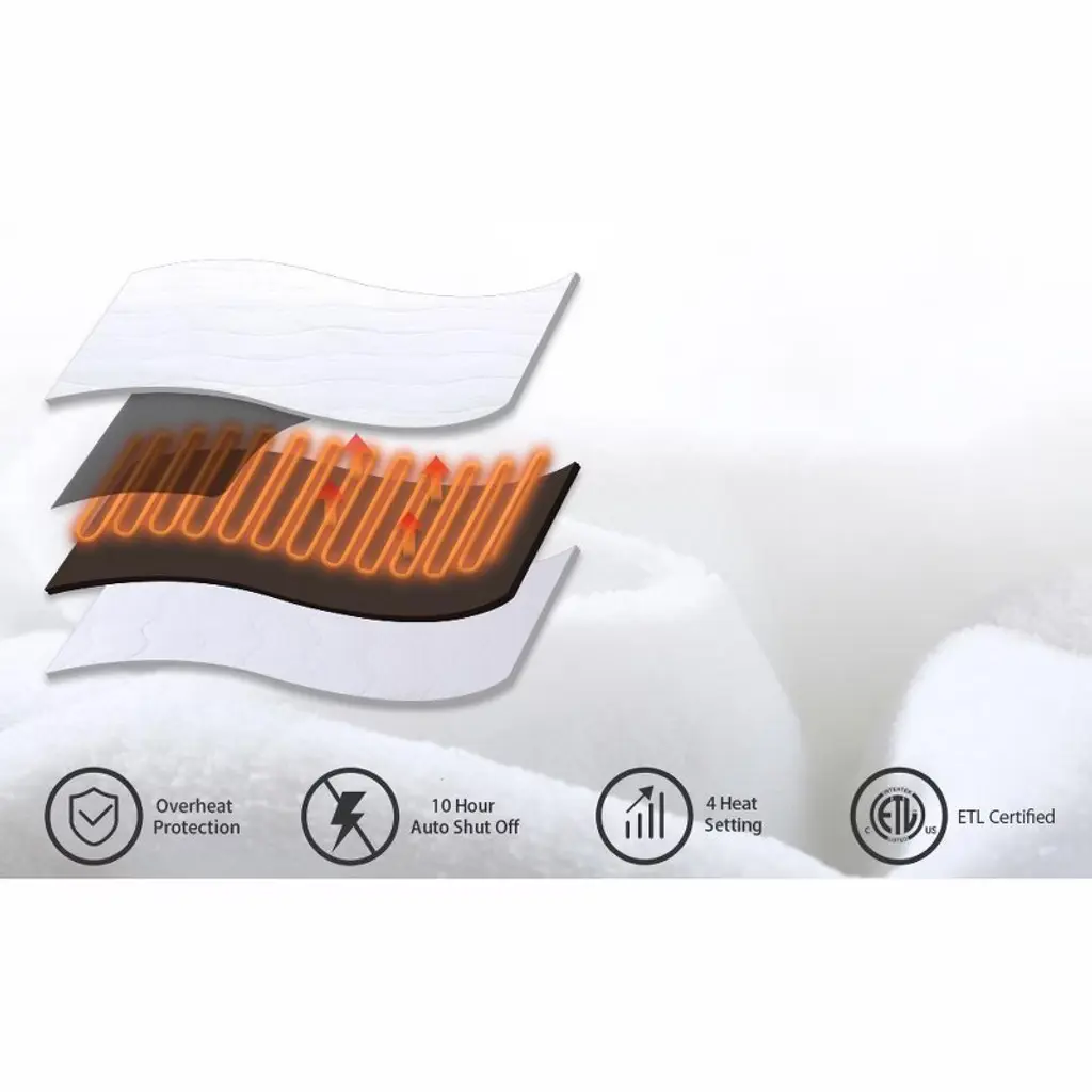 Introducing our King Size Electric Heated Mattress Pad, crafted from soft coral fleece for ultimate comfort. This luxurious bed warmer features four adjustable heat settings, allowing you to customize your warmth for a perfect night's sleep. With a 10-hour timer and automatic shut-off, you can rest easy knowing it prioritizes safety and energy efficiency. ETL certified for quality, this mattress pad is an essential addition to your bedding for those chilly nights.