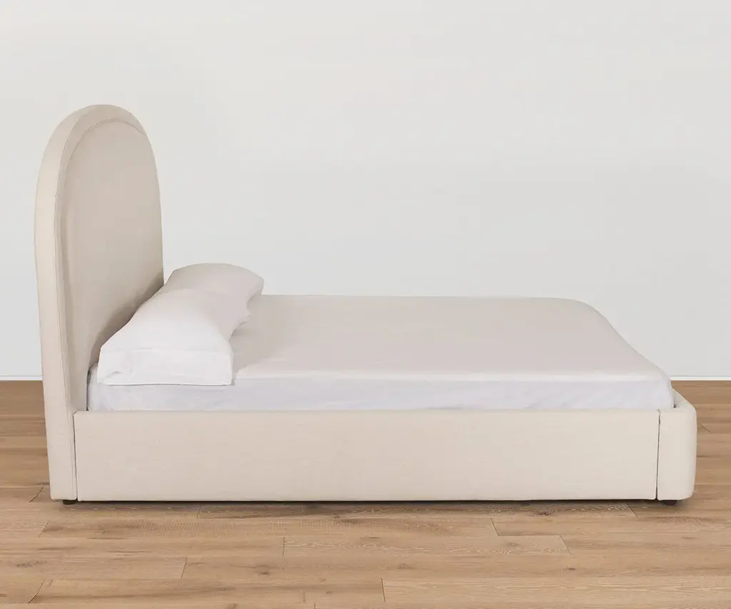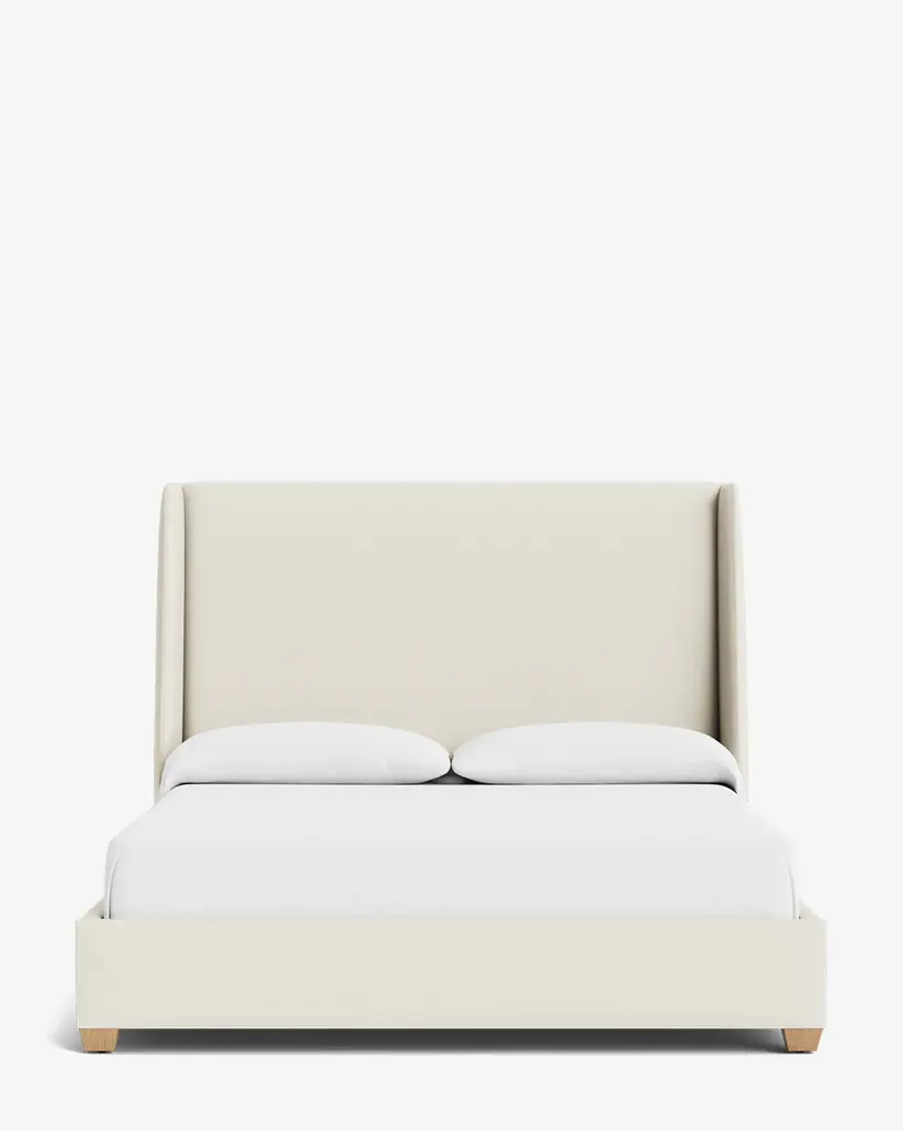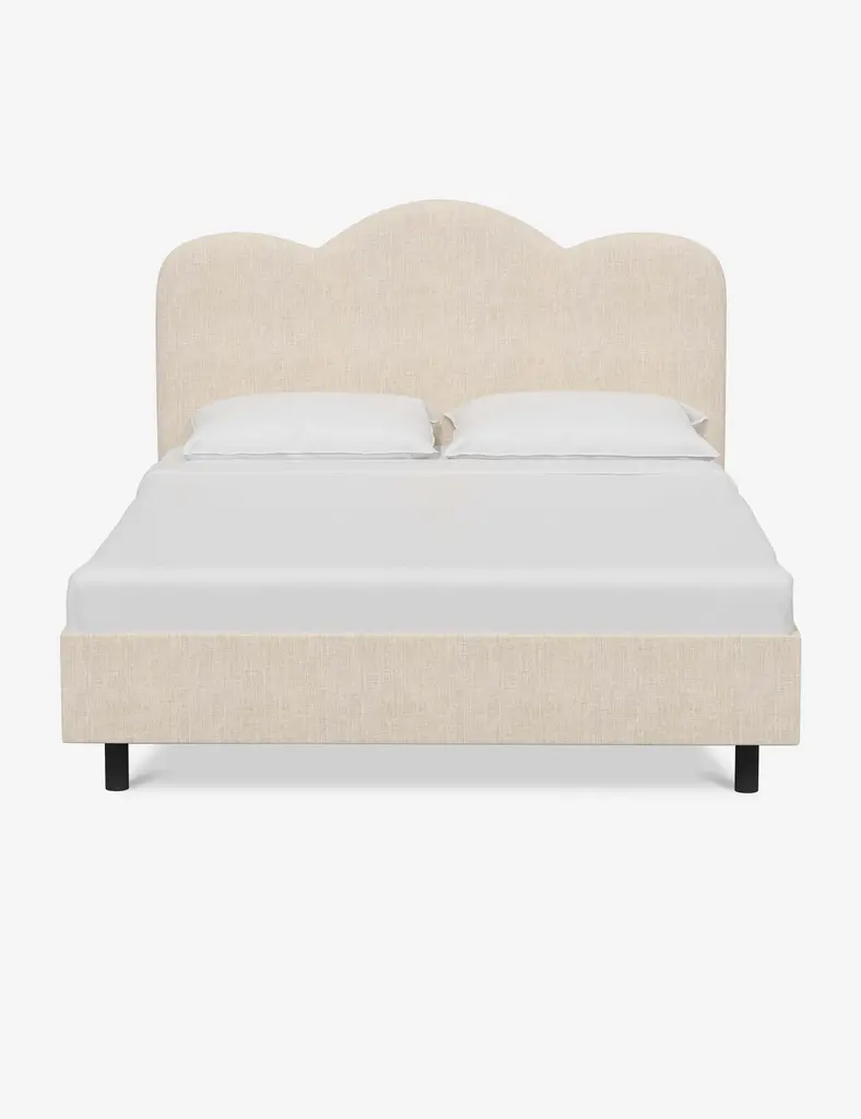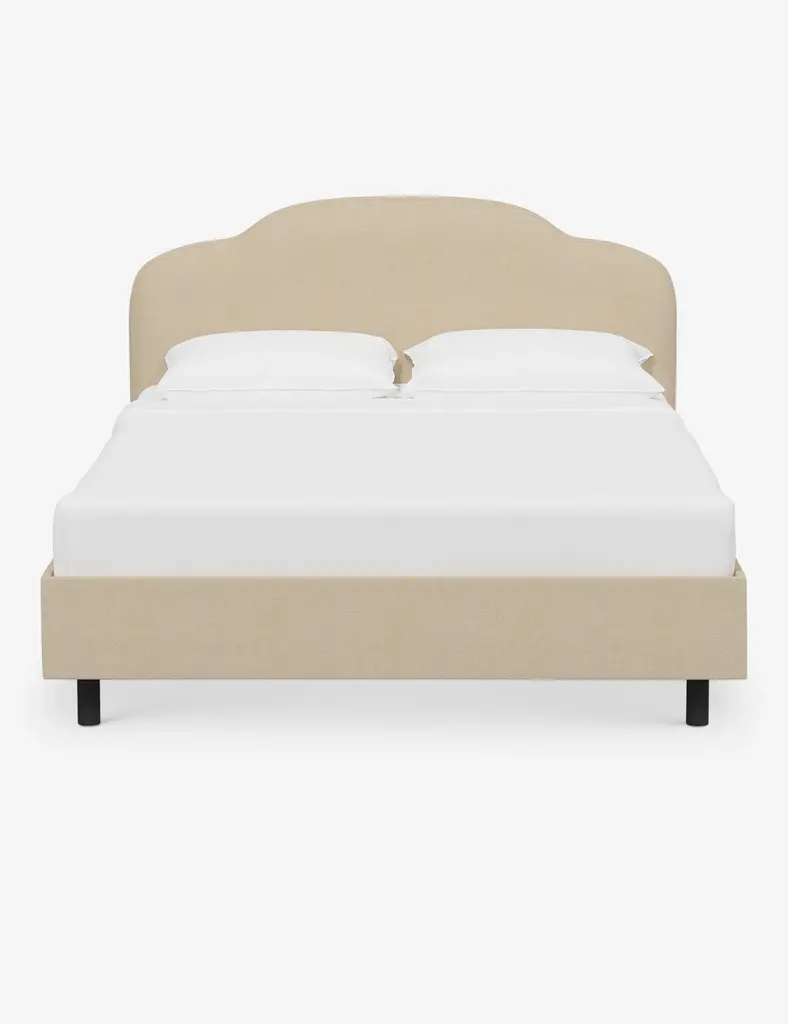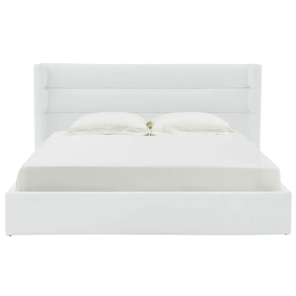The fully upholstered Eliseo King Bed features a beautiful, contoured silhouette and detailed piping for a clean, contemporary look. Pair it with the Eliseo Bench and Ennio Settee for a coordinated bedroom aesthetic. Available for custom order. Made in the USA.