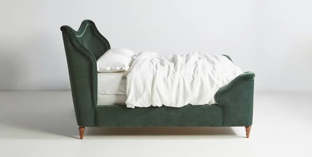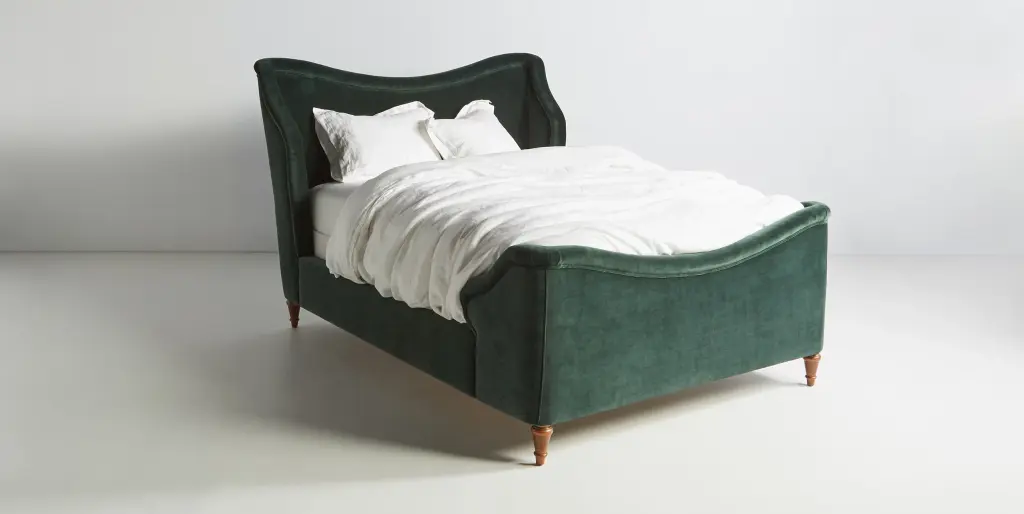 Inspired by the comely camelback silhouette of our bestselling Pied-a-Terre Sofa, this show-stopping bed is an ideal way to frame both neutral and patterned bedscapes.