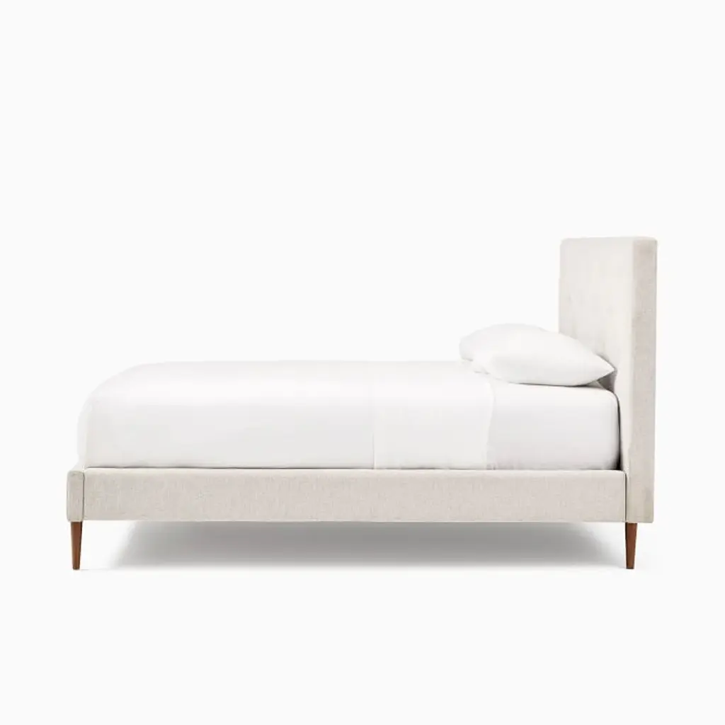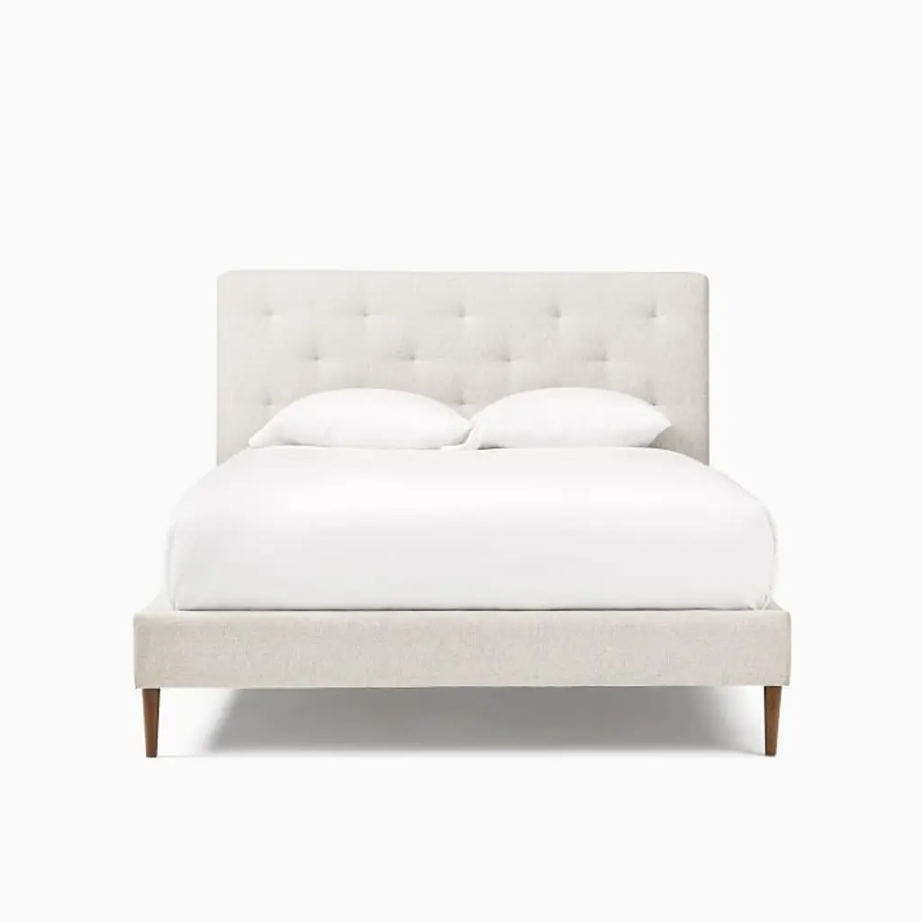 Choose your headboard height: Standard (46”) or Tall (58”). Choose the tufted detailing for the headboard: Vertical, Horizontal, Grid, Border, Diamond or Nontufted. Thickly padded and tightly upholstered on all sides (excluding back of headboard) in your choice of fabric. Back of headboard is 100% polyester. Solid pine and engineered wood frame with reinforced joinery. Ash wood legs in an Almond or Cool Walnut finish. All wood is kiln-dried for added durability. Wood slats included. Built-in levelers on legs provide stability on uneven surfaces. Accommodates most standard mattresses; box spring optional. This contract-grade item is manufactured to meet the demands of commercial use in addition to residential. See more. Made in Mexico.
