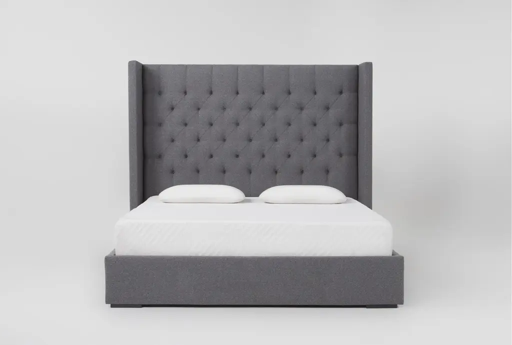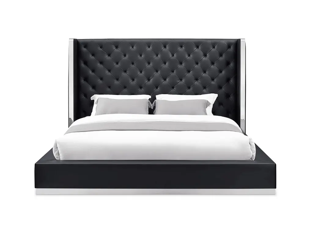Channel tufting pared with an acrylic frame gives our Emory Bed a modern feel with glamourous touches. Accented with stainless steel corners and feet. Shown in Bella Velvet Grey. Queen: 66"W x 88"D x 56"HEastern King: 82"W x 88"D x 56"HCal King: 78"W x 92"D x 56"HExclusive to Z Gallerie.Custom options available including over 15 fabrics. Custom Orders: Custom Furniture is manufactured especially for you, which is why we do not accept cancellations, exchanges, or returns.