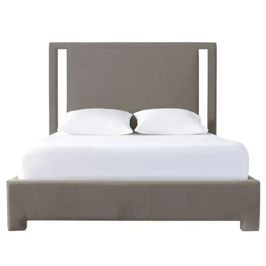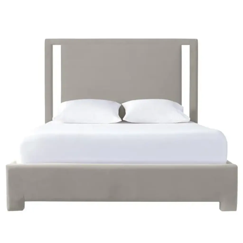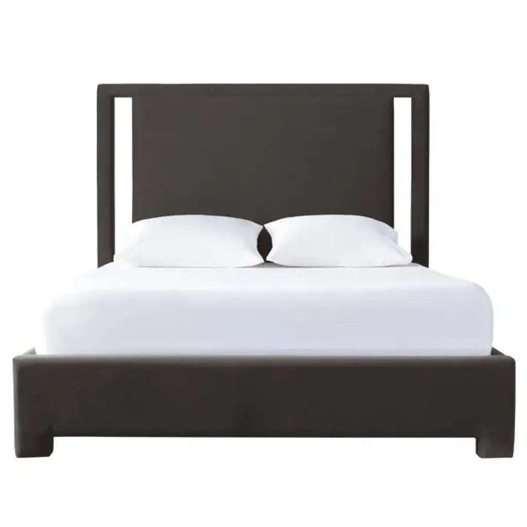 Channel tufting pared with an acrylic frame gives our Emory Bed a modern feel with glamourous touches. Accented with stainless steel corners and feet. Shown in Bella Velvet Grey.Queen: 66"W x 88"D x 56"HEastern King: 82"W x 88"D x 56"HCal King: 78"W x 92"D x 56"HExclusive to Z Gallerie.Custom options available including over 20 fabrics. Custom Orders: Custom Furniture is manufactured especially for you, which is why we do not accept cancellations, exchanges, or returns.