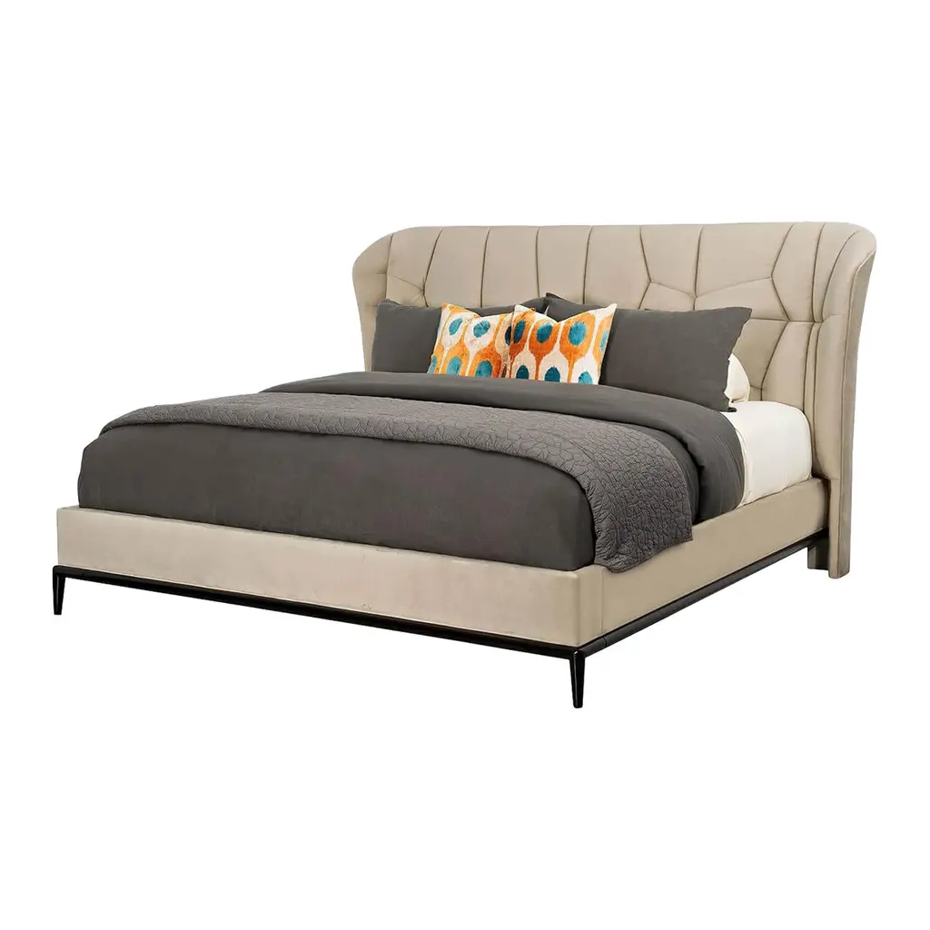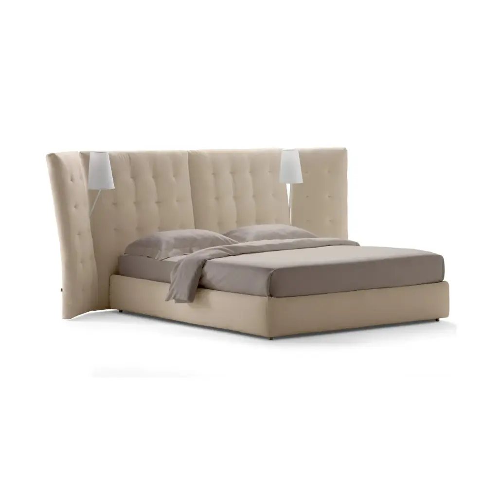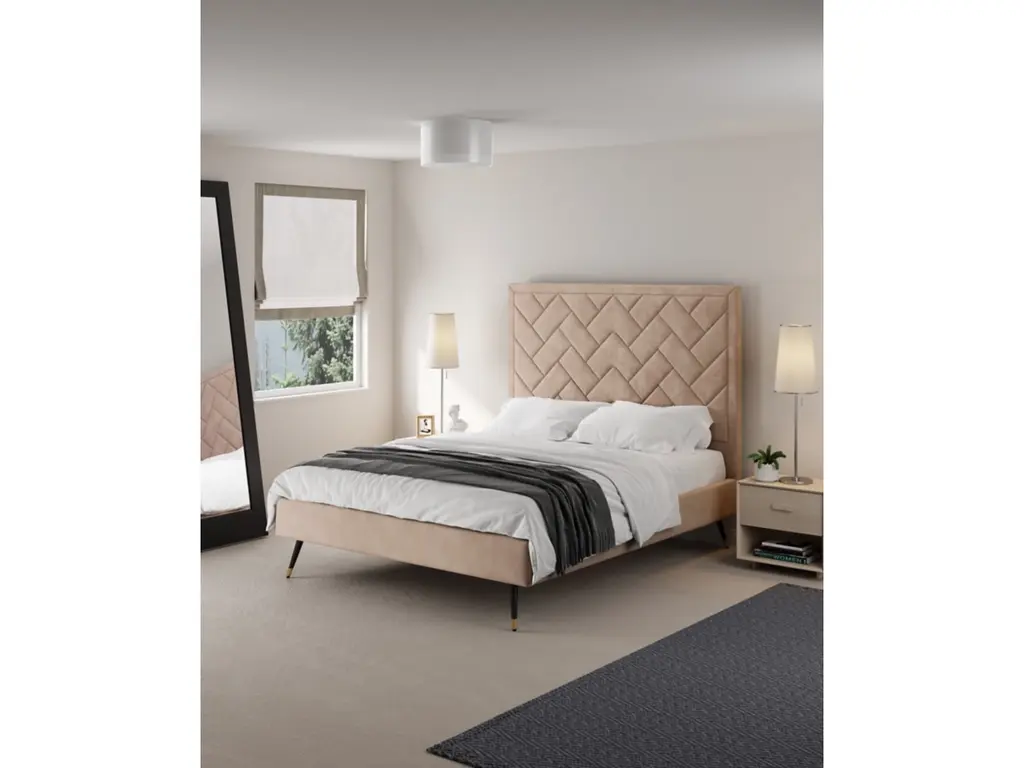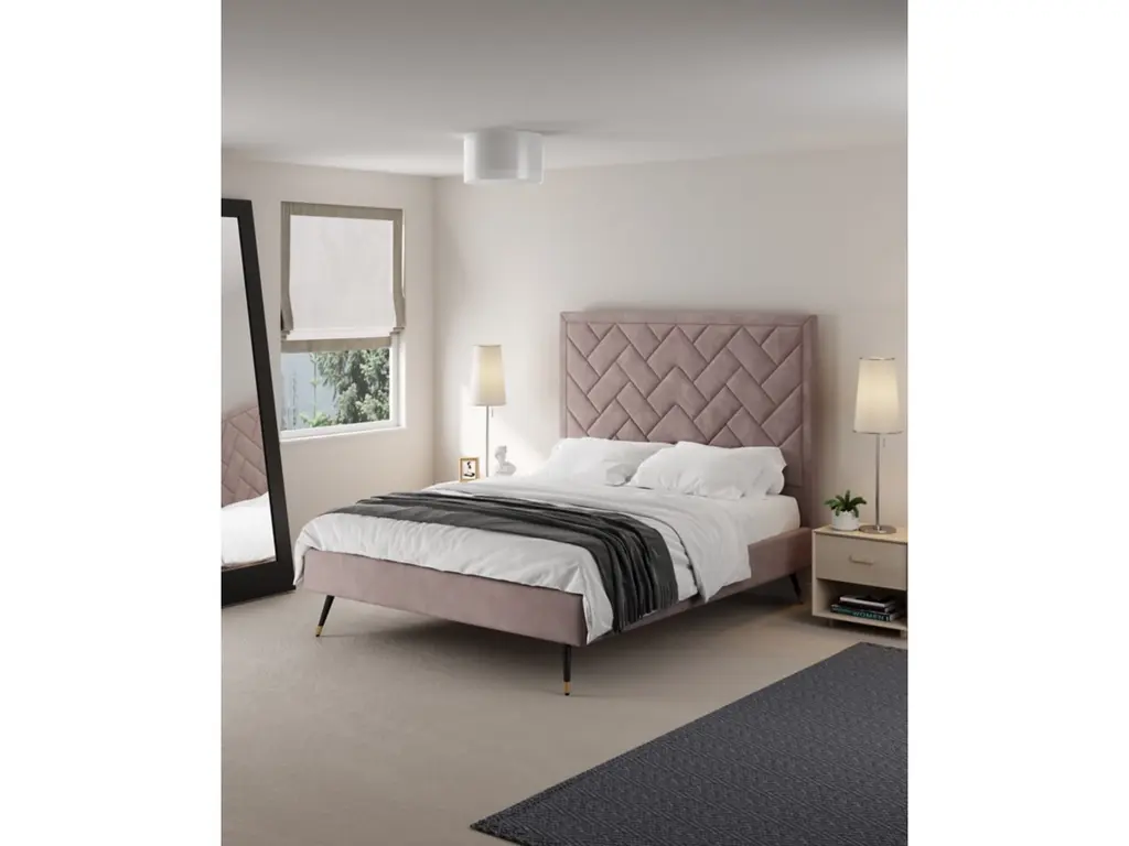 Structure in solid oak with frame in solid oak. Rod in solid heat-cured oak, vacuum packed. The headboard panel is padded with Vinyl. Manufactured in Europe.