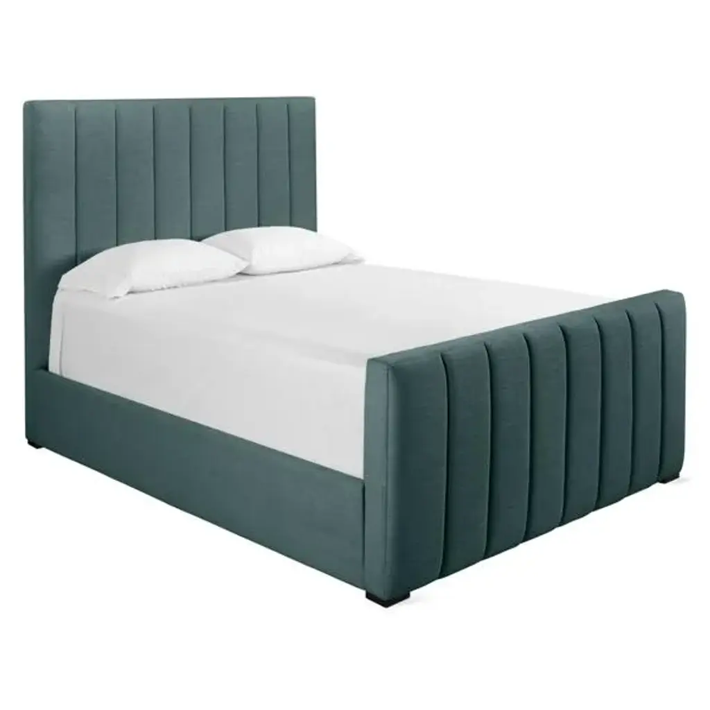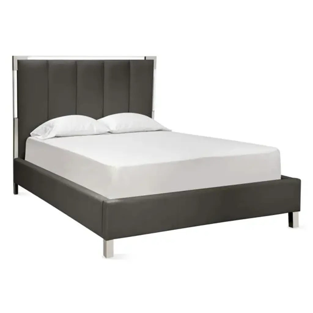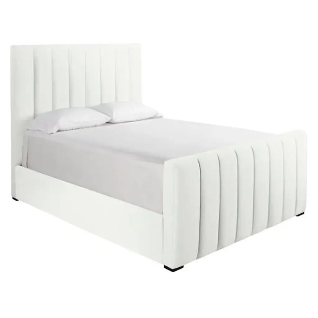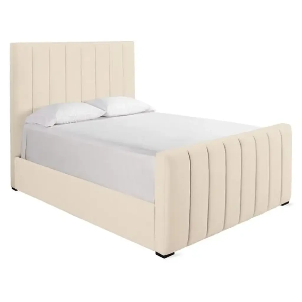 Radiating a cozy, chic sensibility, this plush upholstered headboard with vertical channeling provides visual interest.