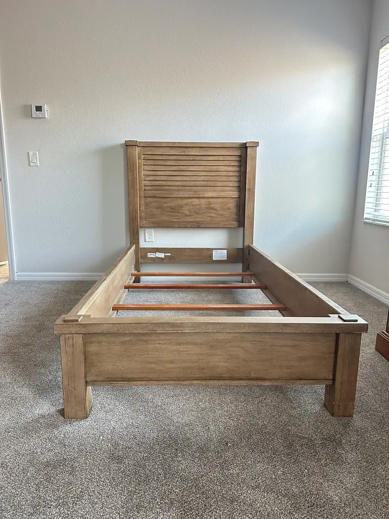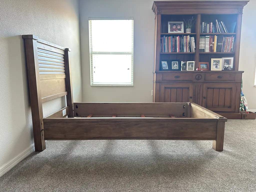 Elevate your guest room or primary suite with these stunning Ethan Allen Drake Bedframes, finished in the rich, sophisticated Umber tone. Crafted with Ethan Allen’s signature quality and attention to detail, the Drake Bed is a timeless piece that blends classic elegance with modern sensibility. Its refined silhouette features clean lines, gently tapered legs, and a stately headboard with just the right amount of architectural flair. These two matching bedframes were purchased brand new in 2020 and have lived a quiet, pampered life in our guest room ever since. Lightly used and lovingly maintained, they are in excellent condition—showing minimal signs of wear consistent with careful, occasional use. The construction is solid wood, built to last, with the craftsmanship you’d expect from Ethan Allen. We fell in love with the Umber finish, a deep, versatile brown that adds warmth and sophistication to any space. It pairs beautifully with a range of color palettes—from crisp whites to moody jewel tones—and works well with both traditional and contemporary décor. What we love most about the Drake is its ability to feel both polished and inviting. It gave our guest room a cozy, upscale feel that made visitors feel truly at home. Whether you’re furnishing a second bedroom, a rental property, or upgrading your current setup, these beds are a perfect mix of function, form, and enduring style. We’re only parting with them due to a design update—but if we had another guest room, we’d be keeping them without question. Bring home this pair and enjoy Ethan Allen quality at a fraction of the original price.