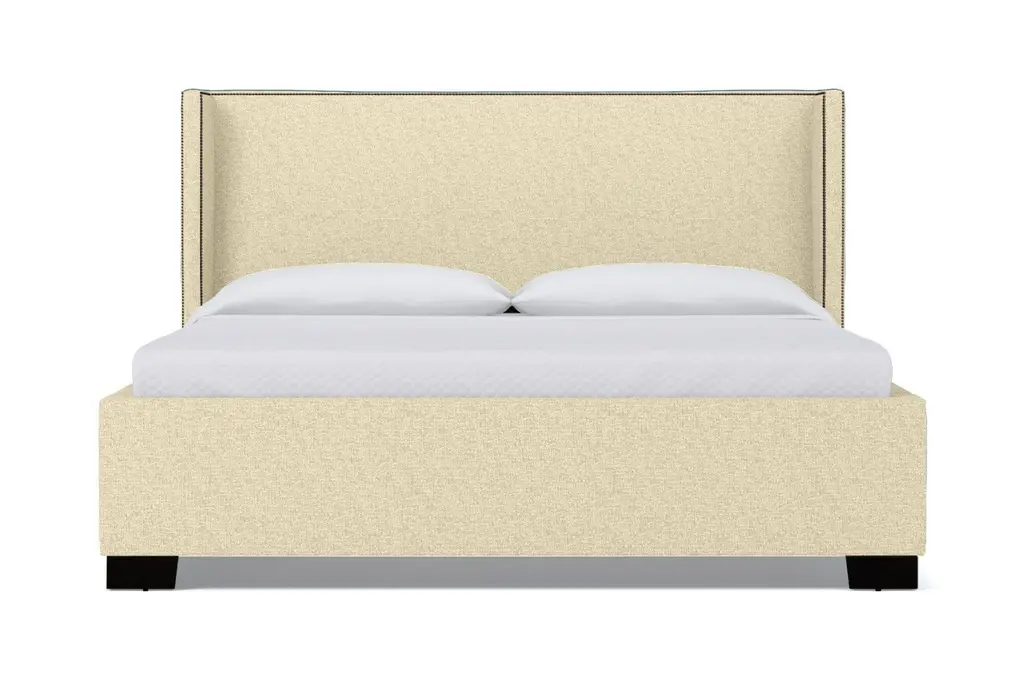 The Everett Upholstered Bed is quietly one of the most beautiful and contemporary beds that we offer at Apt2B. It has an unassuming, handsome profile that's detailed with rustic antique nailheads. The Everett is a modern upholstered bed that combines expert craftsmanship with contemporary charm. The Everett is available in Full Size, Queen Size, King and California King. This bed does require a box spring to provide the necessary support for your mattress. This custom upholstered bed can be made in any of Apt2B's robust line of pet friendly and kid friendly fabrics. Apt2B fabric covers every color on the spectrum like blue, white, and even bright pink! Choose the Everett Upholstered Bed if you want a durable, elegant, and modern centerpiece for your bedroom.