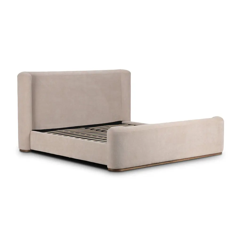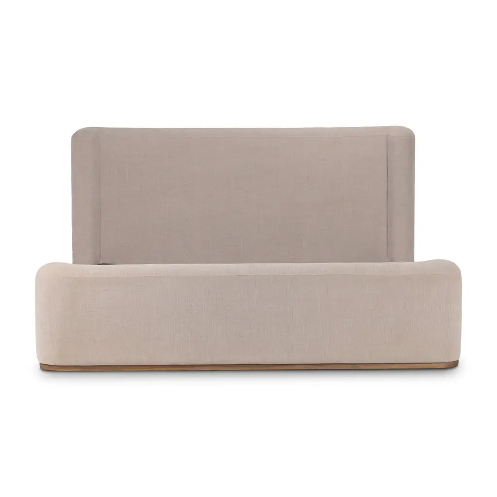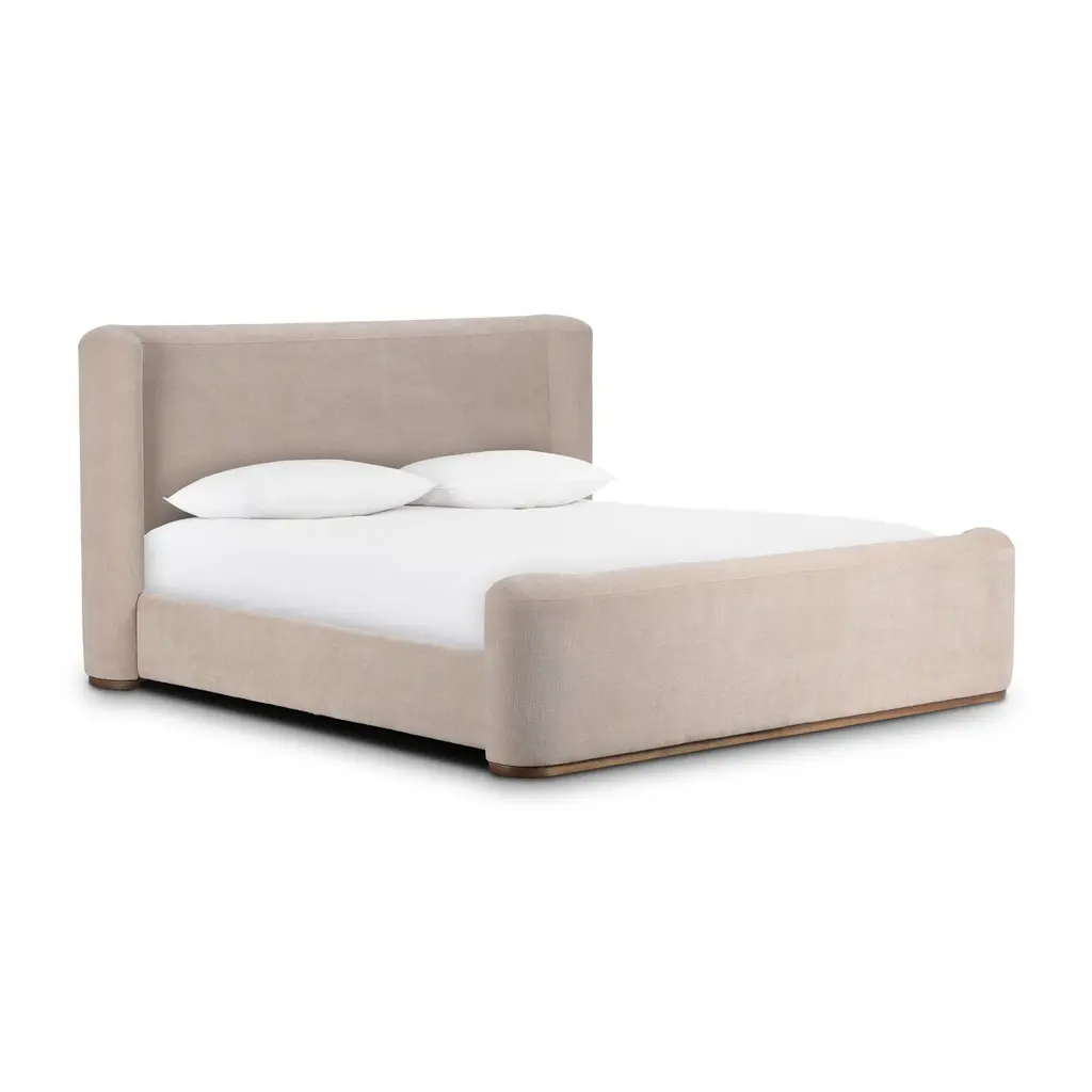 Embrace understated elegance with the Fane Bed from Four Hands. The transitional style frame complements any interior with its sheltered head and footboards, gracefully contouring the silhouette. A plinth ash base adds a touch of luxury, while all-around cushioning creates an inviting atmosphere for rest and relaxation. Highlights
