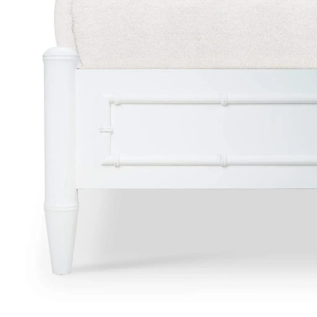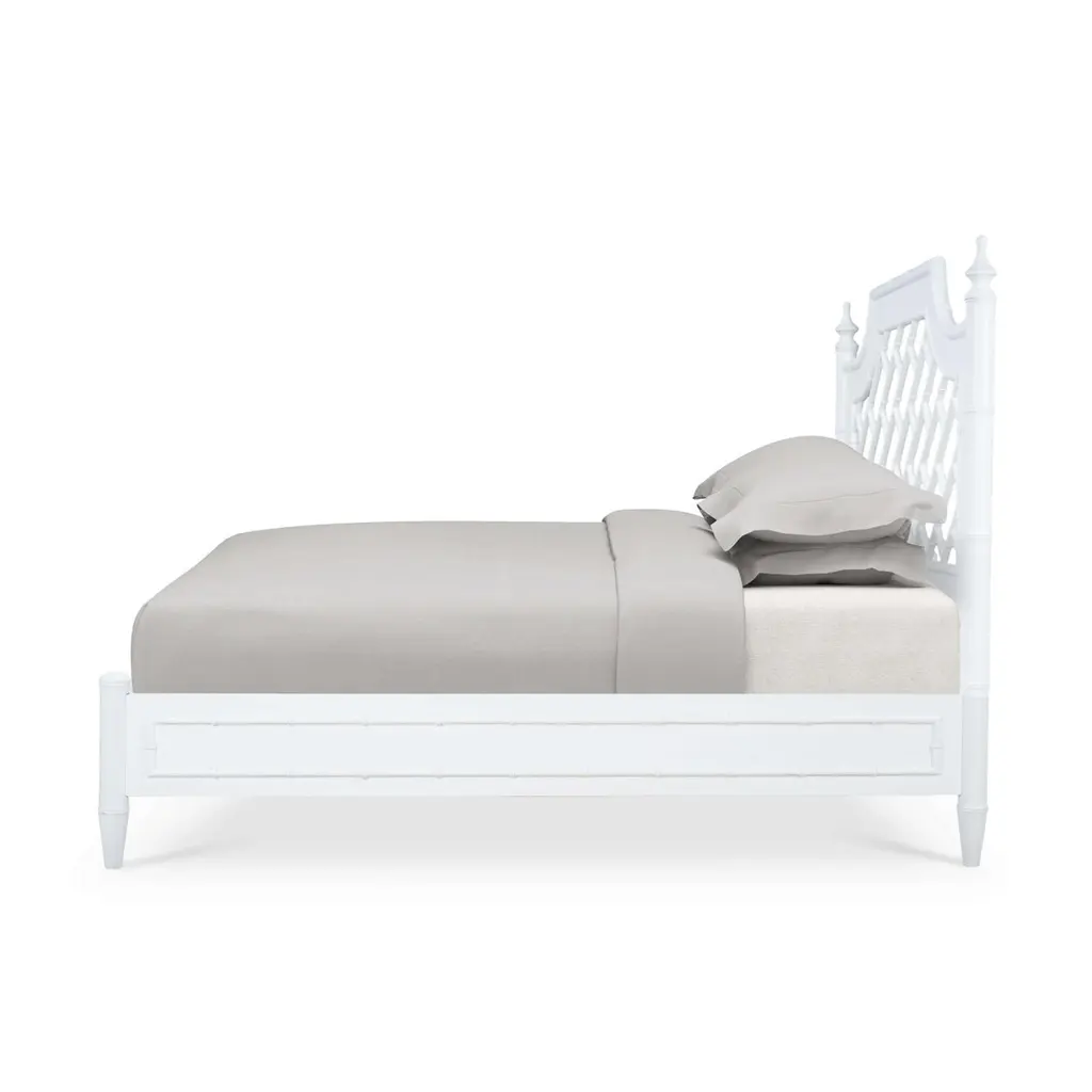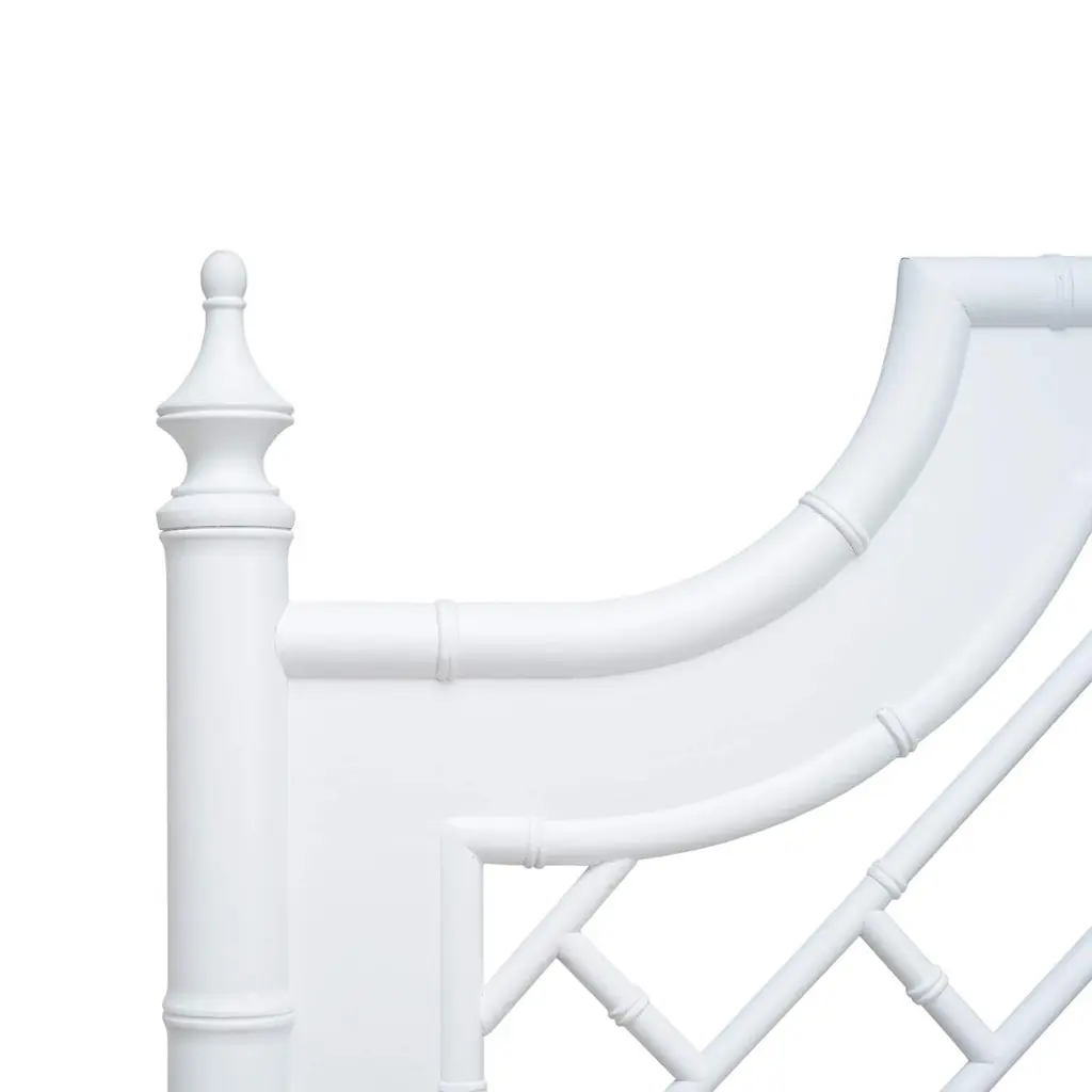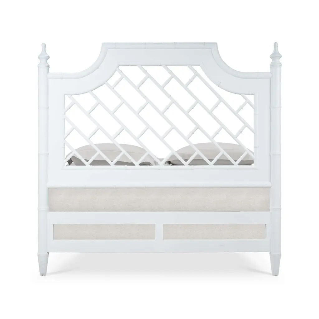 Finished in Architectural White paint with a hand-rubbed and lightly distressed finish. This stunning bedframe combines intricate design with sturdy construction, creating a beautiful focal point for your sleeping sanctuary.Made with solid mahogany, the bed has a carved lattice faux bamboo headboard and posts, this bed offers a modern and bright option for any modern, coastal, or traditional bedroom style.Dimensions: 81" W x 87" D x 62" H