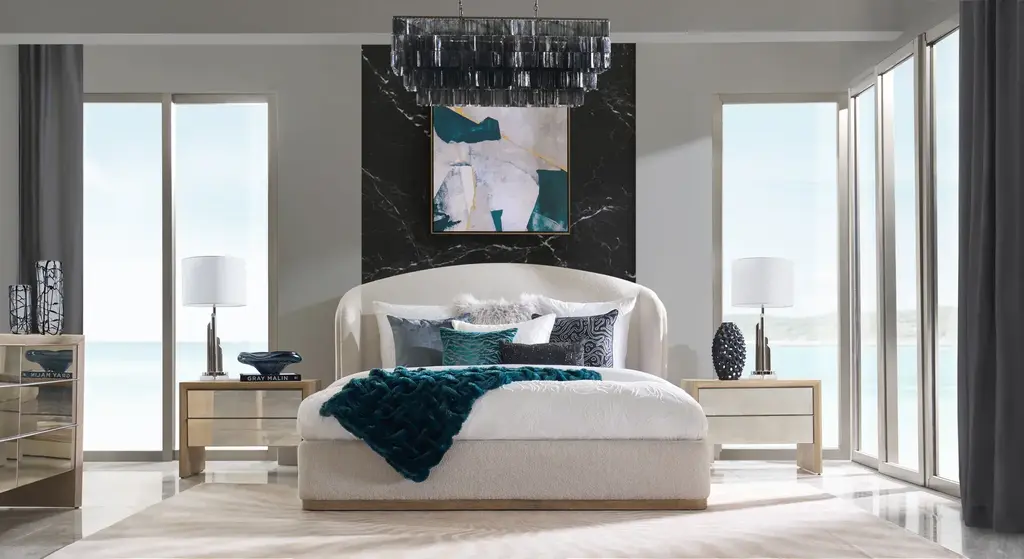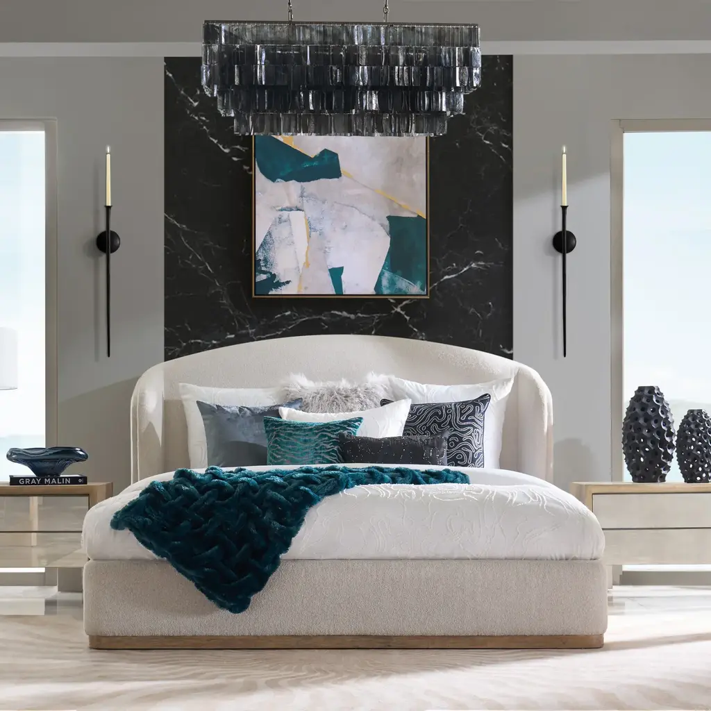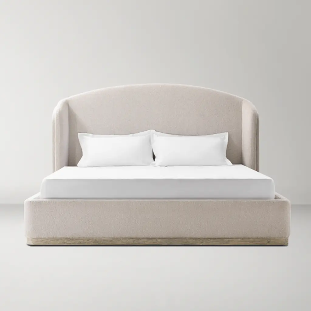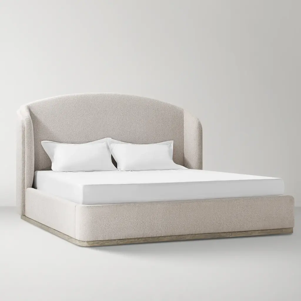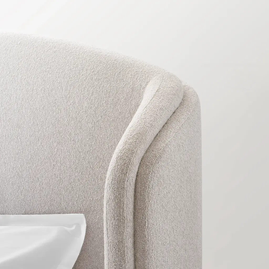 Transform your bedroom into a sanctuary with the Flare Bed. Upholstered in plush boucle fabric in soft beige or grey, this bed features a gracefully curved headboard with hand-crafted double-layered detailing. A solid rubberwood base ensures sturdy support, while high-density foam promises unparalleled comfort. The Flare Bed is the epitome of relaxation and refined style. ZG Exclusive