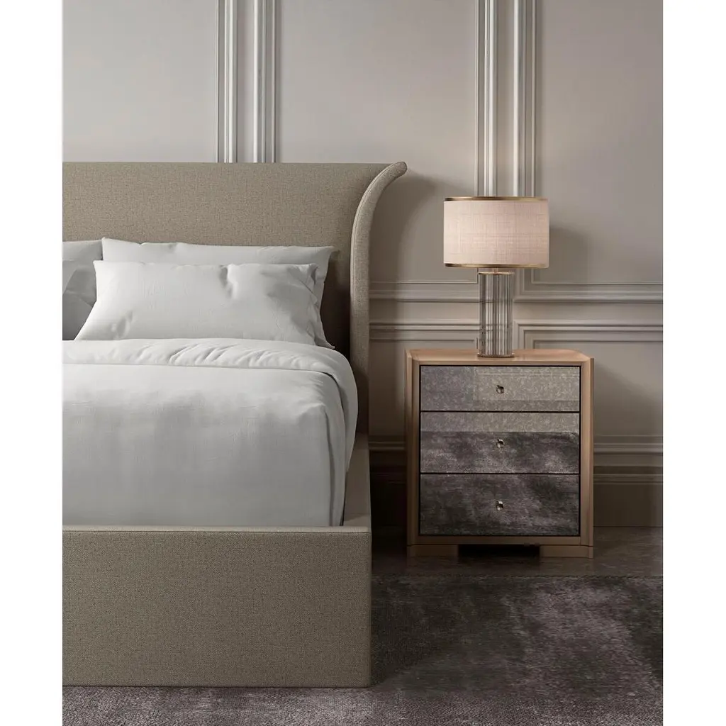 Flared Modern Fully Upholstered King Bed - Oatmeal
