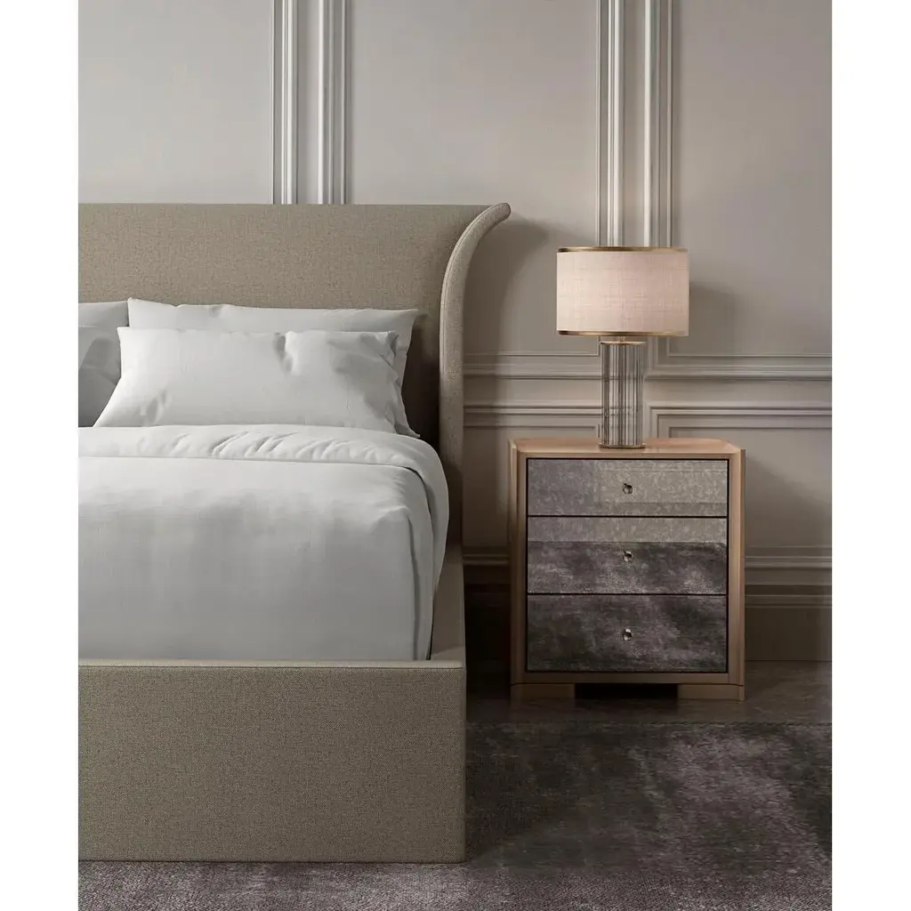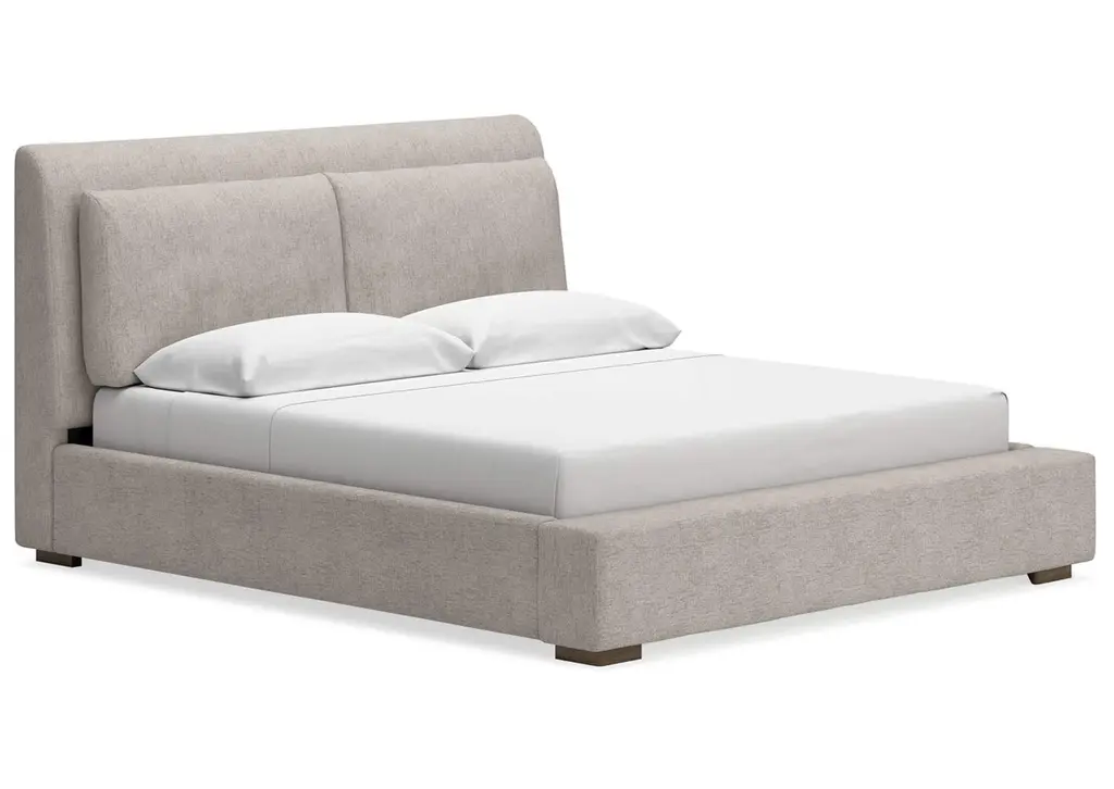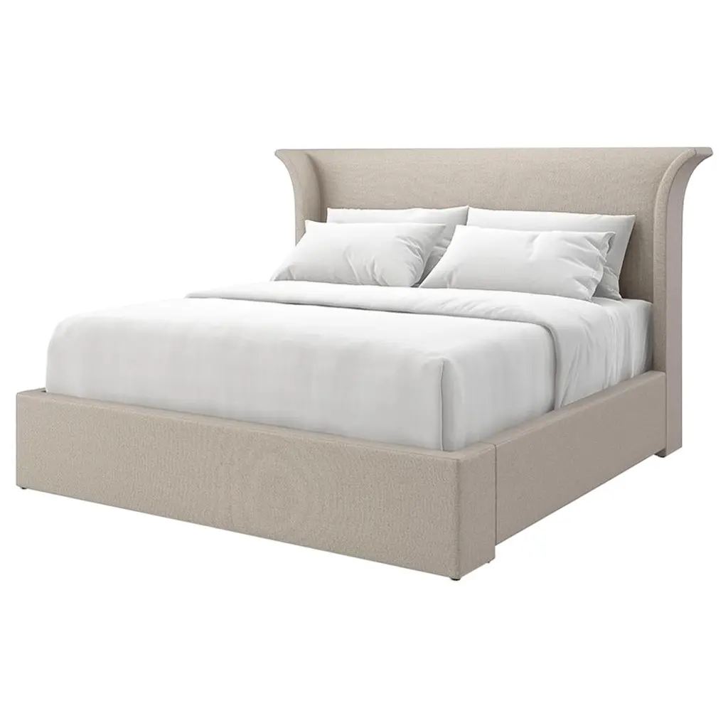 Flared Modern Fully Upholstered Queen Bed - Oatmeal