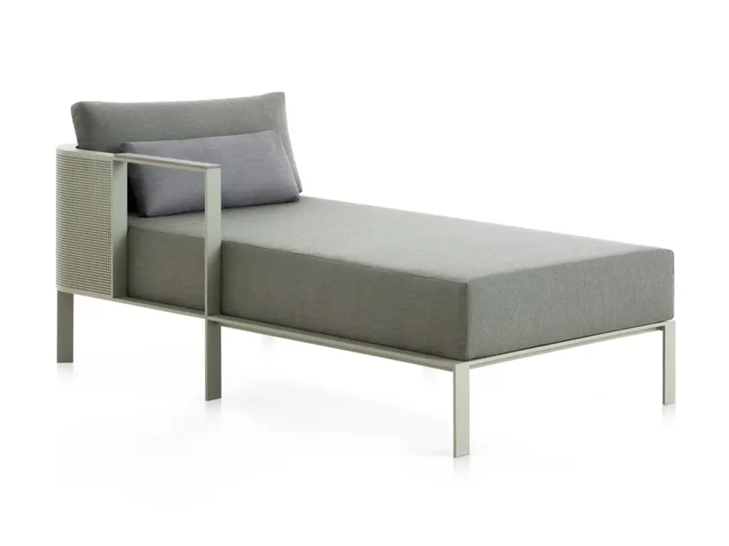 "Flat is a collection of outdoor furniture that we designed for GANDIABLASCO in 2008. Twelve years on, it has been so successful that we’ve continued designing new items. It’s a well-balanced and flexible collection; an essentially formal concept with a light and airy structure in which fabric plays an important part."Made of thermo-lacquered aluminium profiles and 100% recyclable polyethylene. Polyurethane foam rubber covered with water-repellent fabric. Removable fabric cover.Collections colour sample: white, agate grey, cement grey, sand, bronze, blue grey and anthracite.