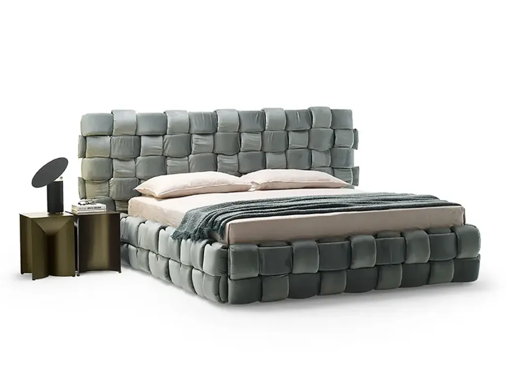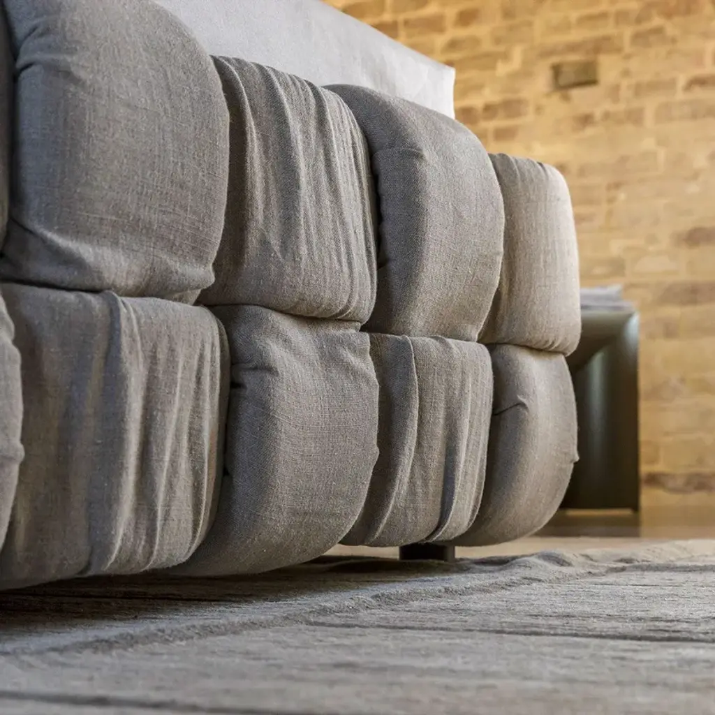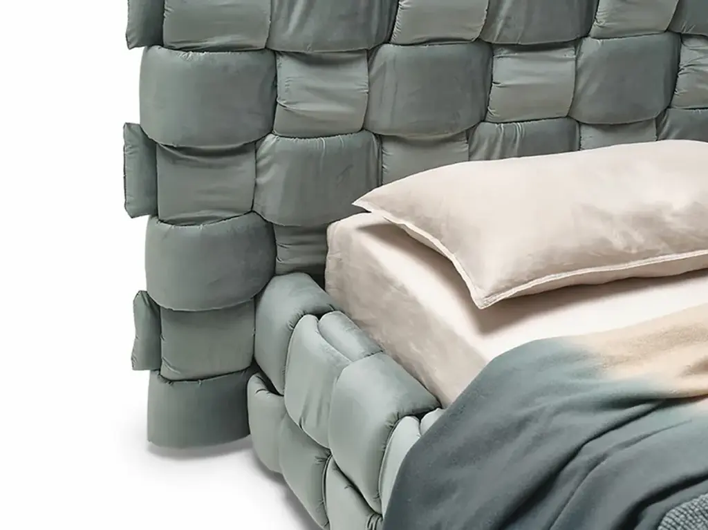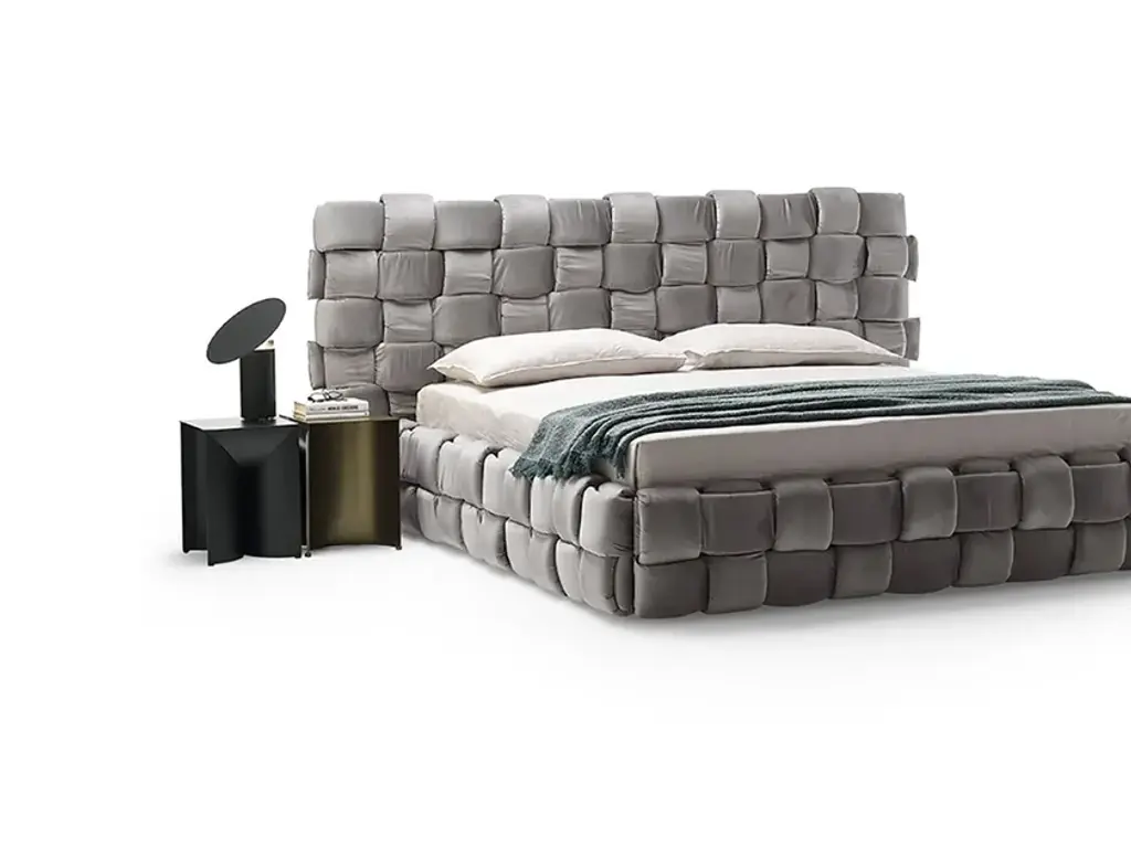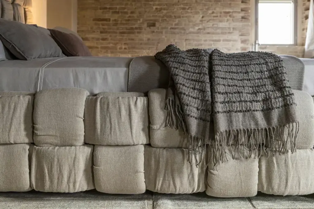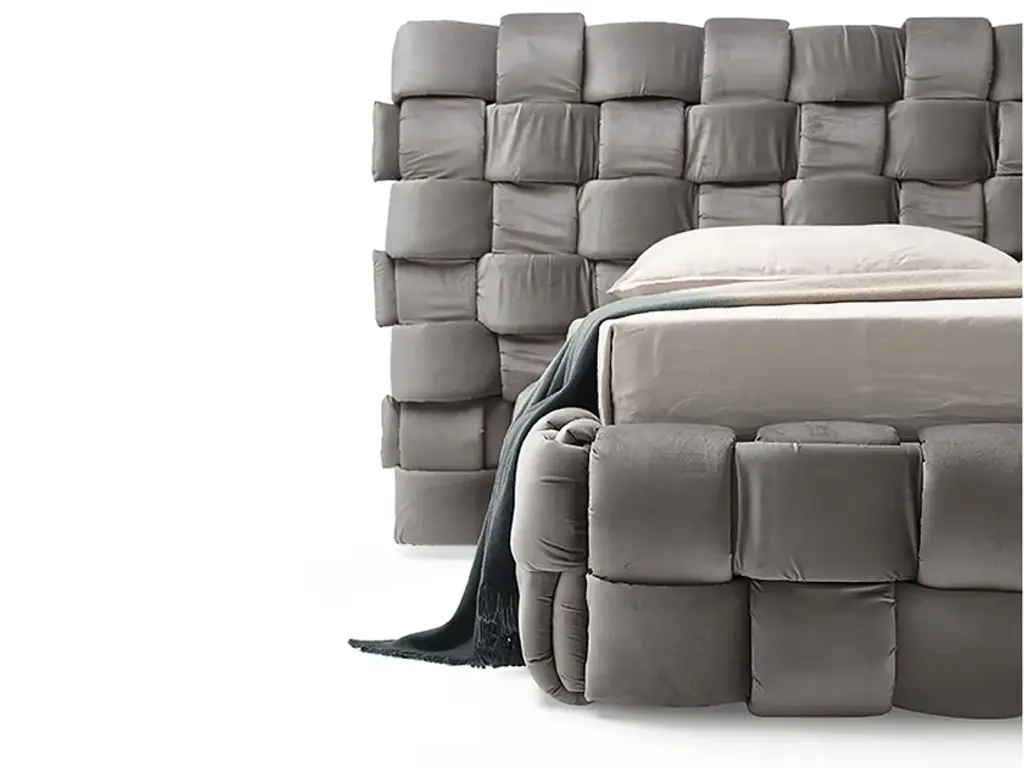 Flirt is a non-removable upholstered bed, complete with a beechwood slatted base in either 160x200 cm or 180x200 cm size. Please specify the chosen size and fabric in the order. The height of the slatted base is adjustable, as indicated in the technical sheet. King and Queen size versions available upon request.
