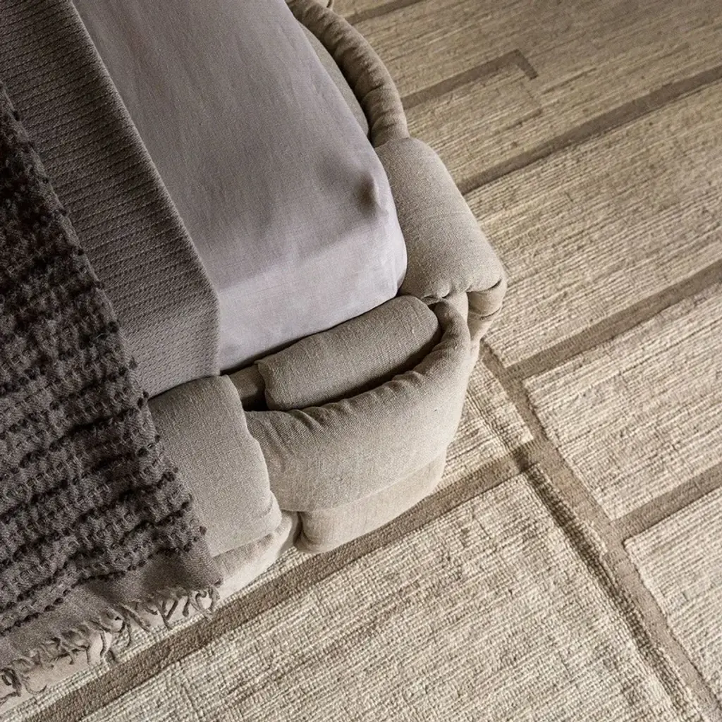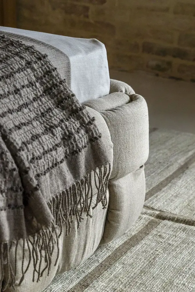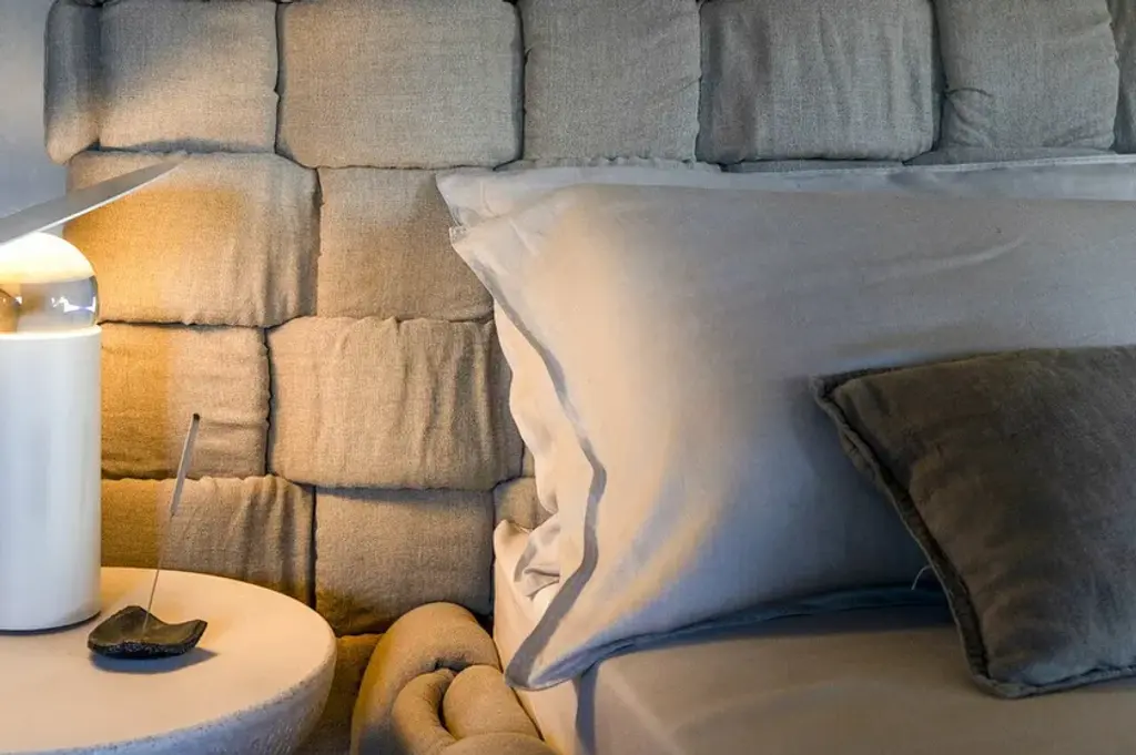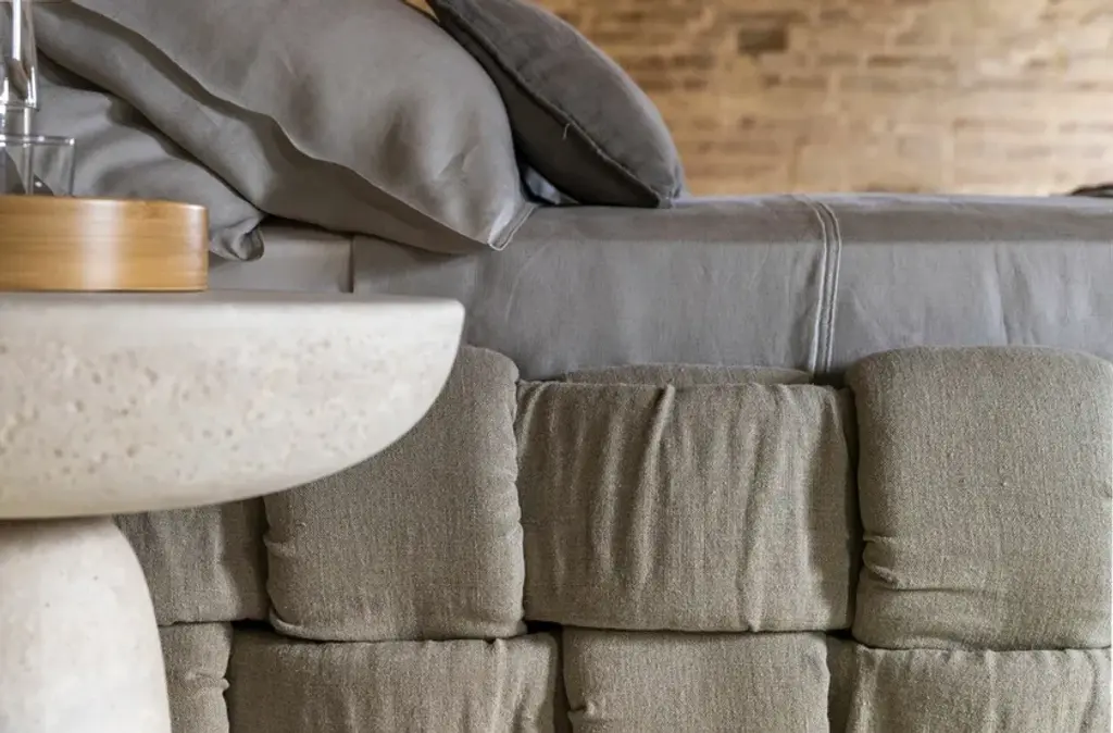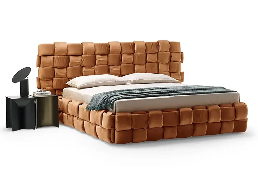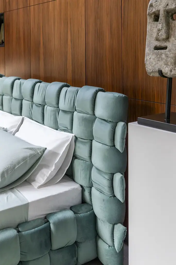 Flirt is a non-removable upholstered bed, complete with a beechwood slatted base in either 160x200 cm or 180x200 cm size. Please specify the chosen size and fabric in the order. The height of the slatted base is adjustable, as indicated in the technical sheet. King and Queen size versions available upon request.