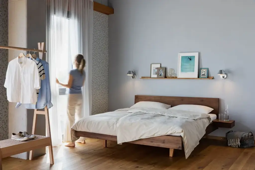 FLY ... is a bed for those who want quality. Perfect shaping, modern, ageless design and exceptionally convincing price value proportion. Massive, floating appearance, which is comforting despite its easy going look, it radiates familiarity, stability and safety.Types of timber available: beech, core beech, oak, wild oak, cherry, black walnut