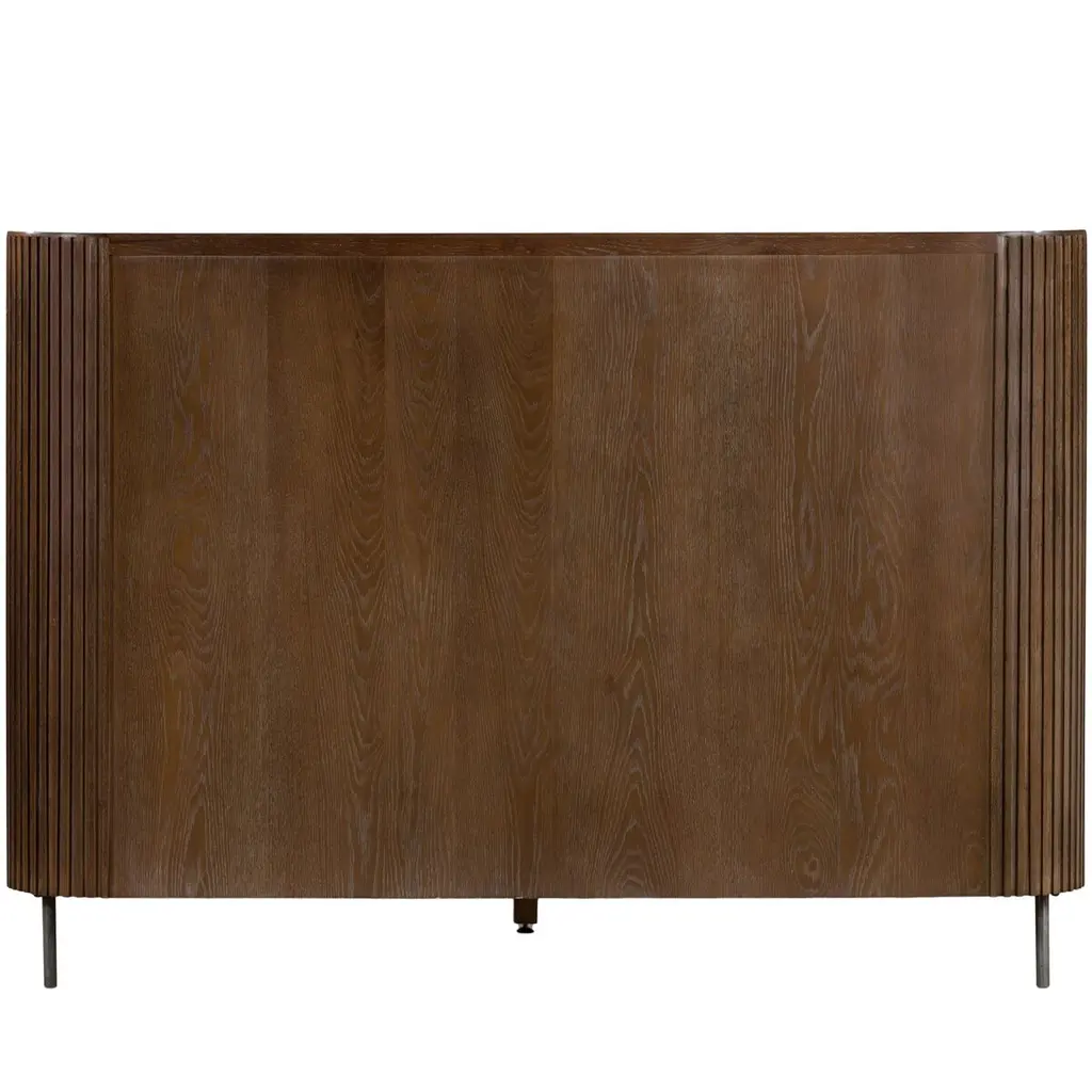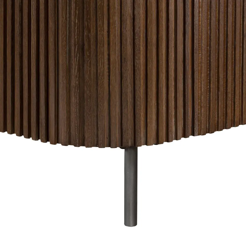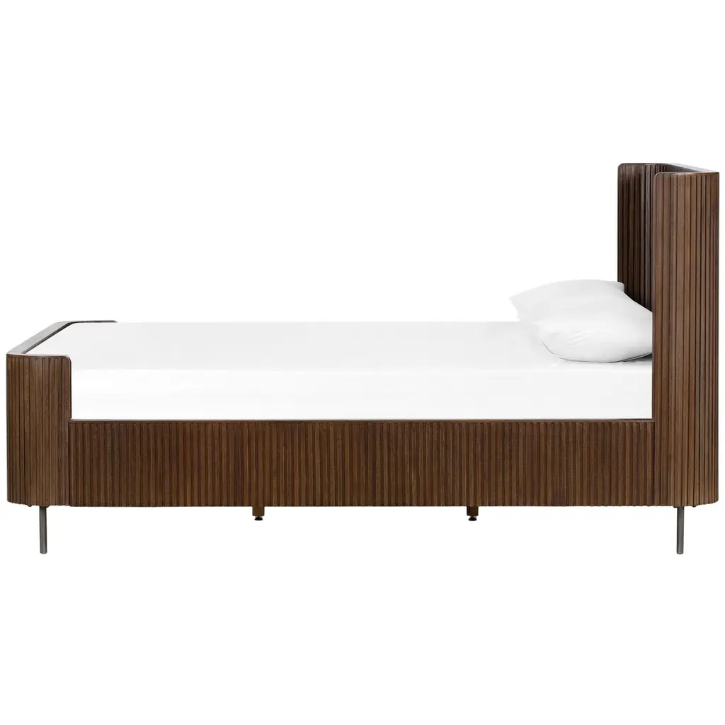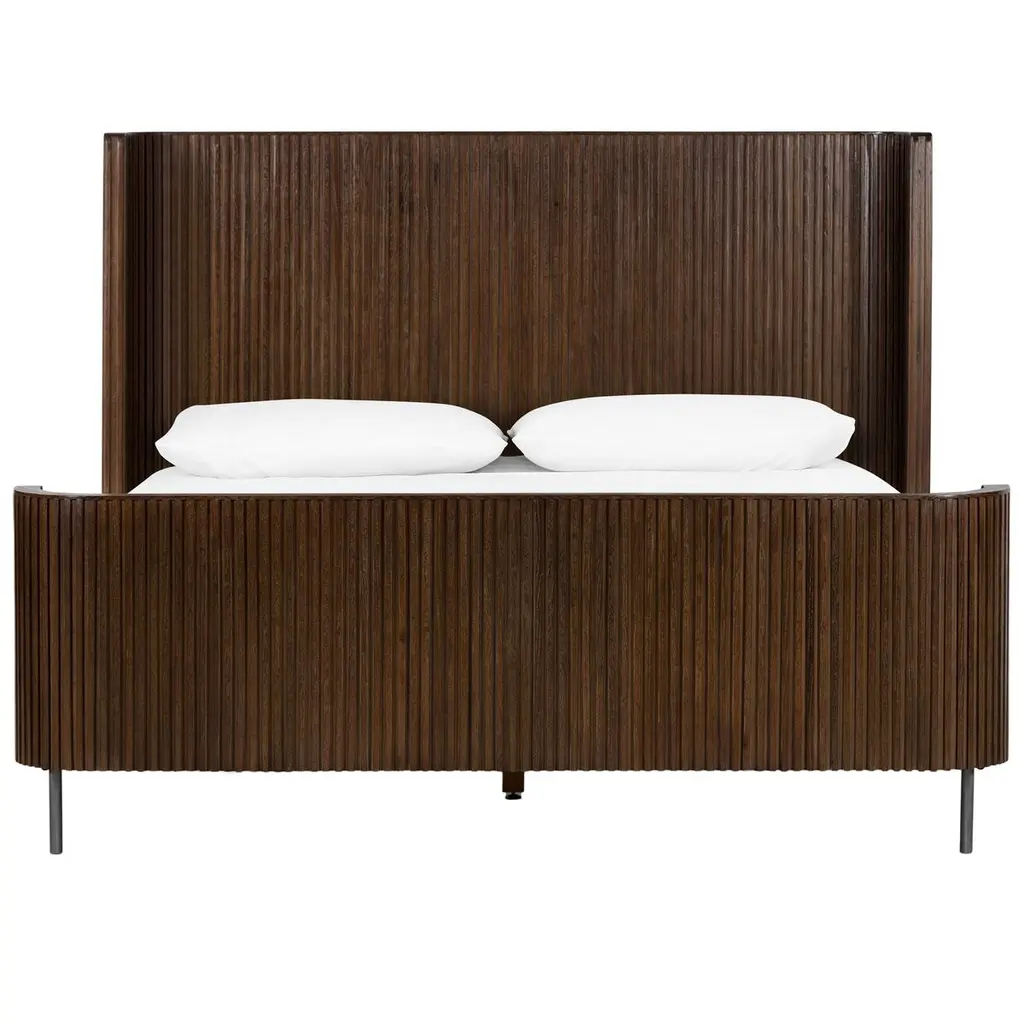Reeding brings rich texture and timeless elegance to this bed, which is crafted of durable oak. The curved corners and the slender iron legs lend a Mid-Century Modern sleekness. Because the bed comes with a slat support system, a box spring is not needed.