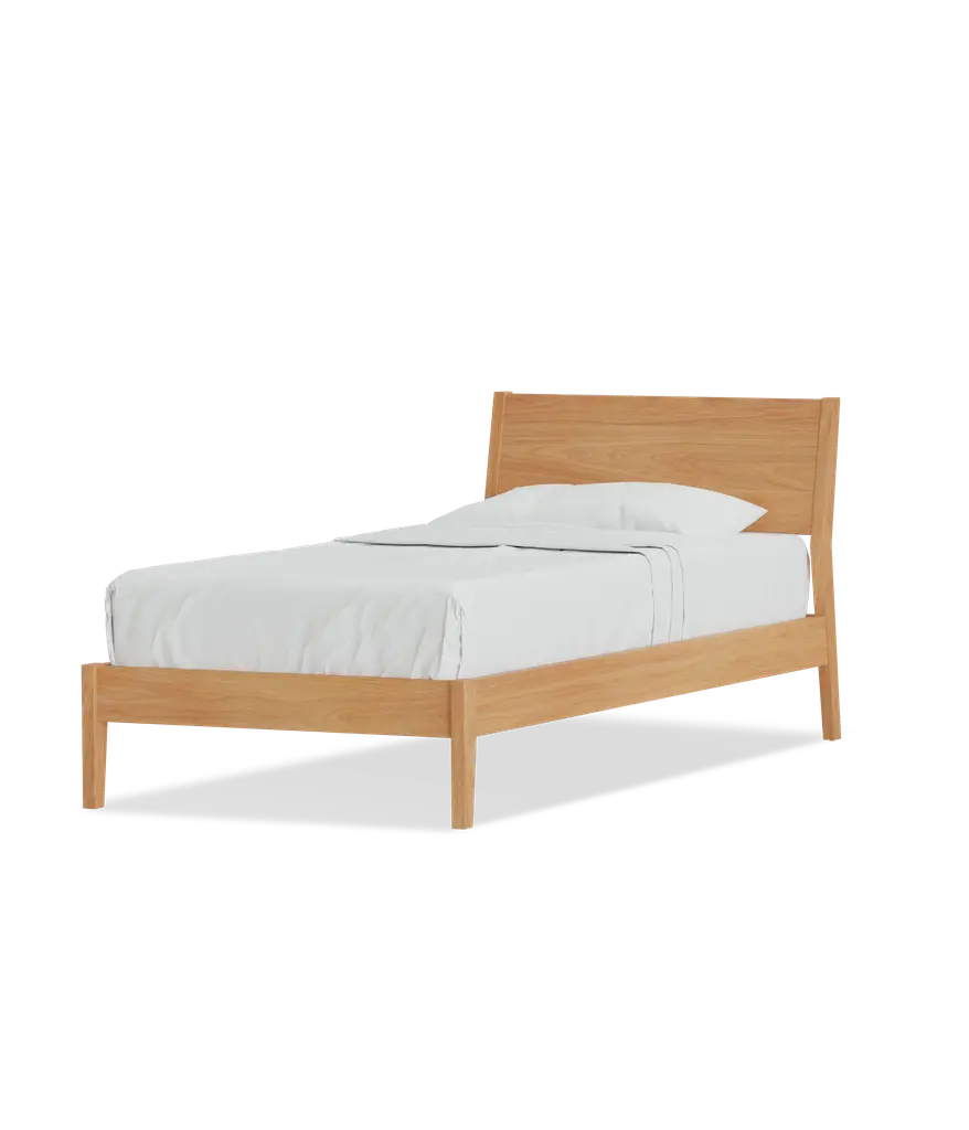 A slanted headboard makes early morning reading or late night movie watching all the more comfortable in our Fulton bed.