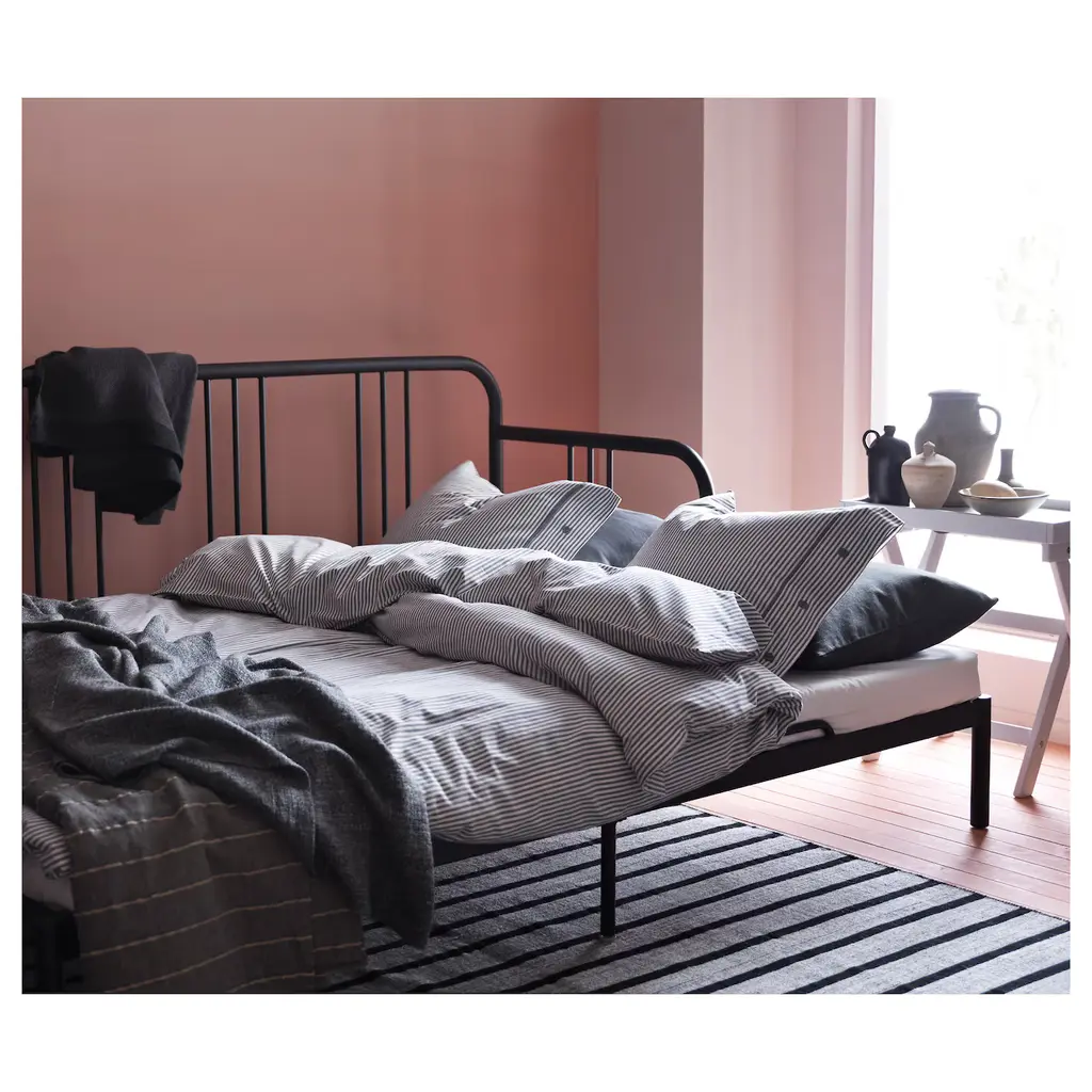 FYRESDAL Daybed with 2 mattresses - black/Åsvang medium firm Twin. A classic powder coated steel frame which is easy to maintain. The timeless design means that you decide what style you want - minimalistic or colorful with lots of patterns. Bed linen sold separately. Bed base in steel included.